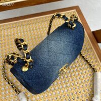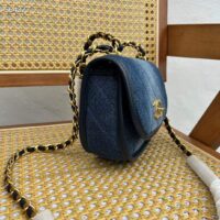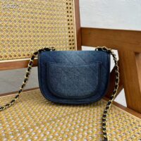 Chanel CC Women Small Messenger Bag Washed Denim Gold-Tone Metal Blue