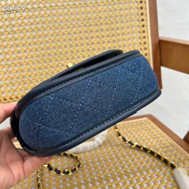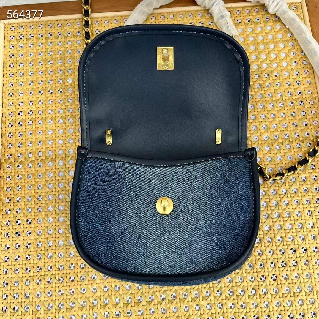 Exact Replica Chanel CC Women Small Messenger Bag Washed Denim Gold-Tone Metal Blue