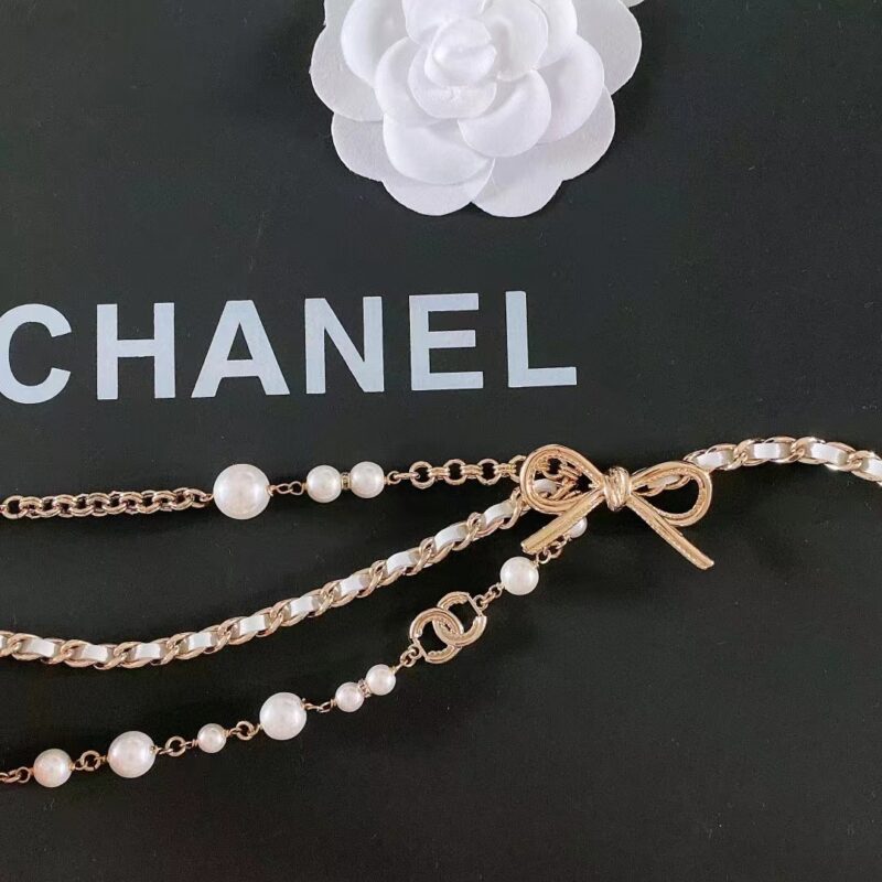 Chanel Women CC Chain Belt Gold Metal Resin Glass Pearls Strass White Calfskin Leather