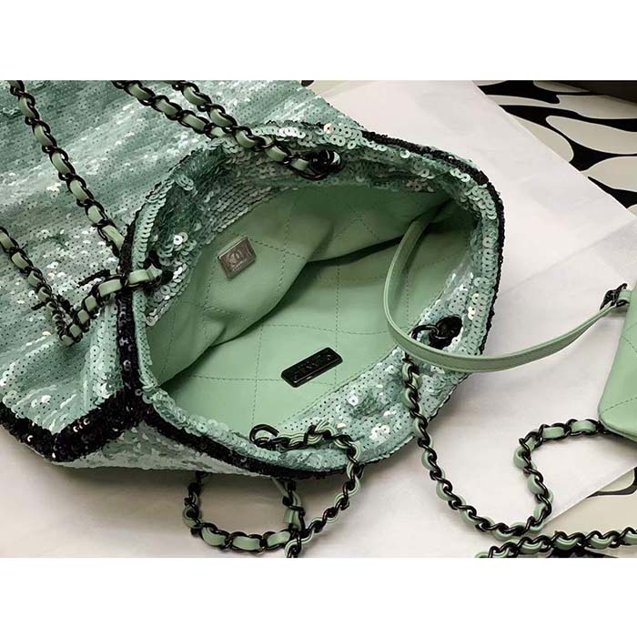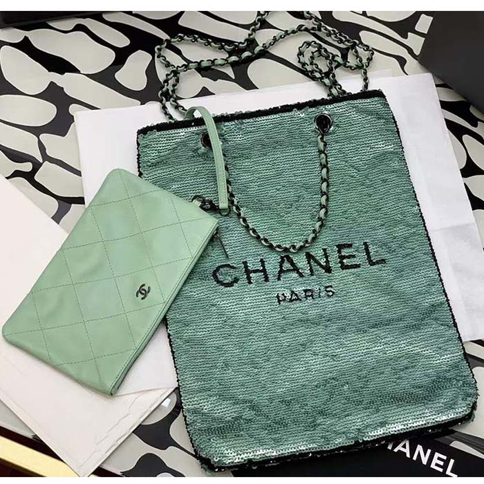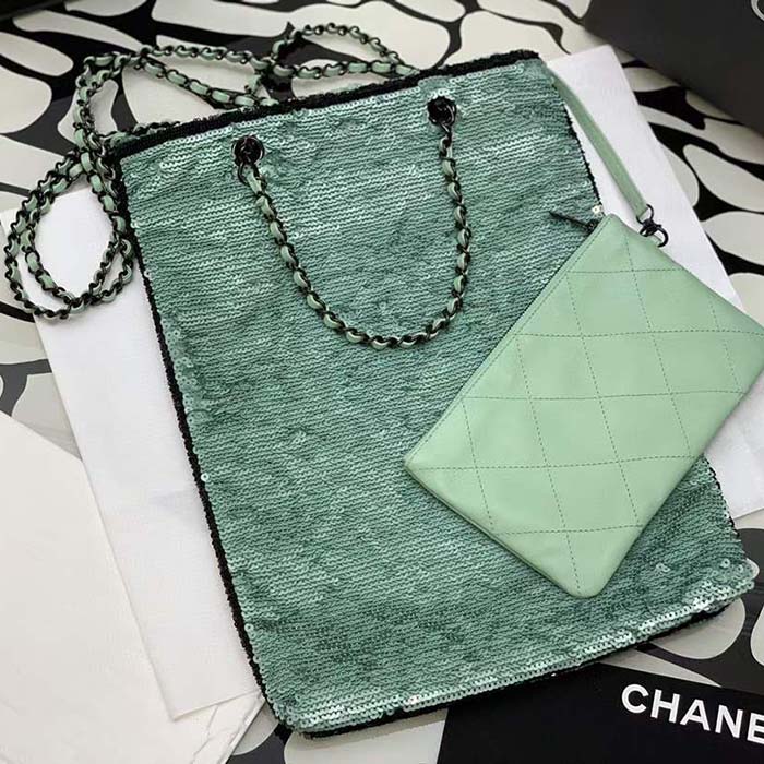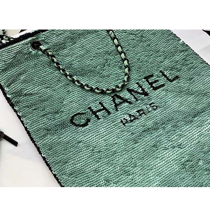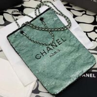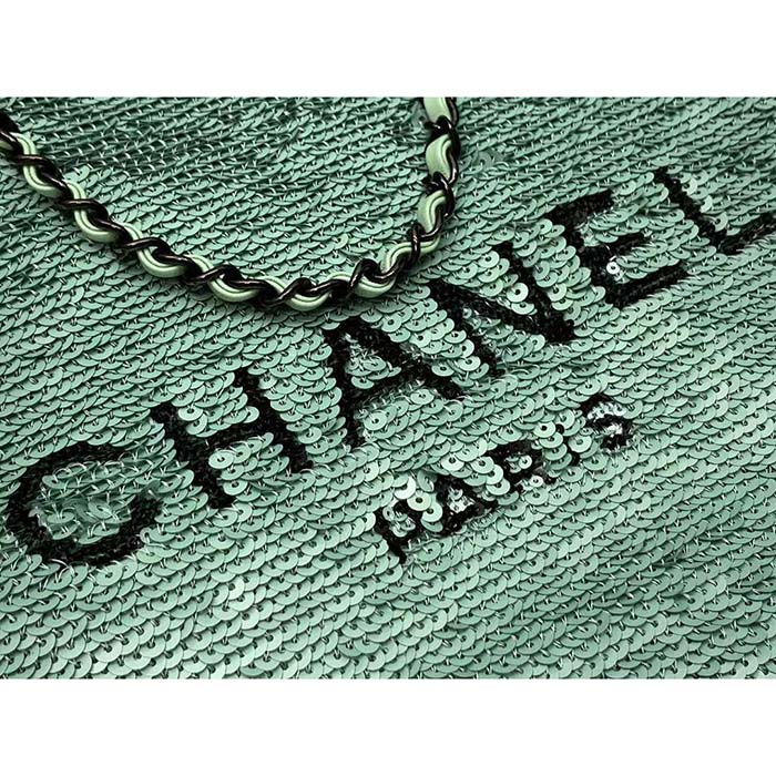 Chanel Mirror Copy Women CC Shopping Bag Sequins Black Metal Green Black