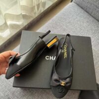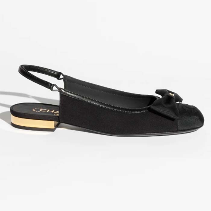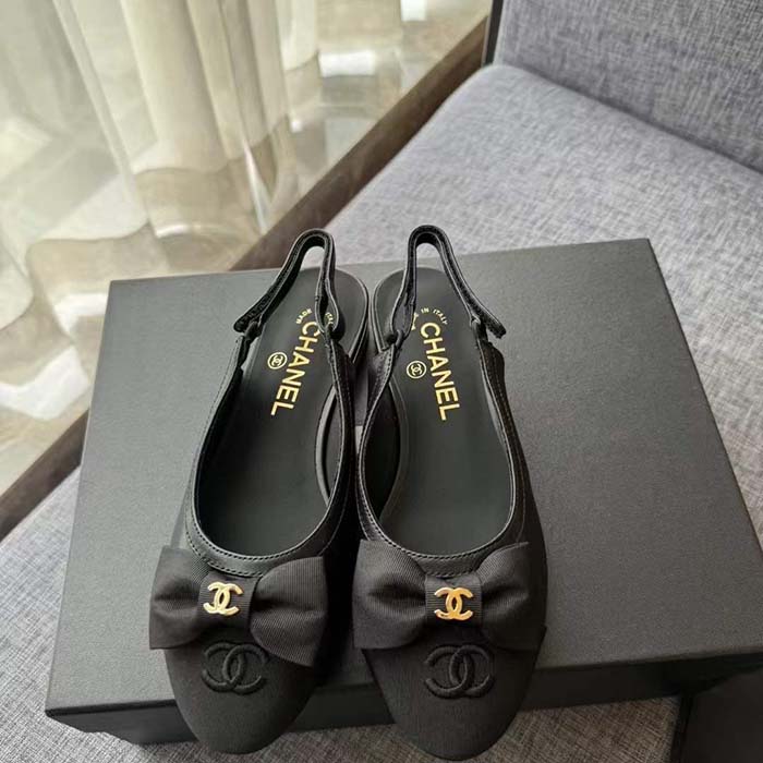 Chanel Women CC Slingbacks Fabric Lambskin Grosgrain Black 1.5 CM Heel