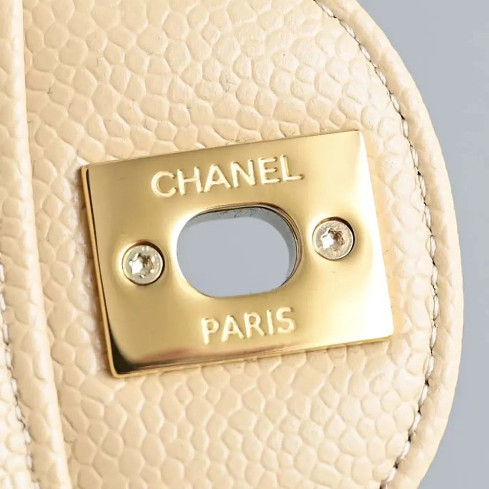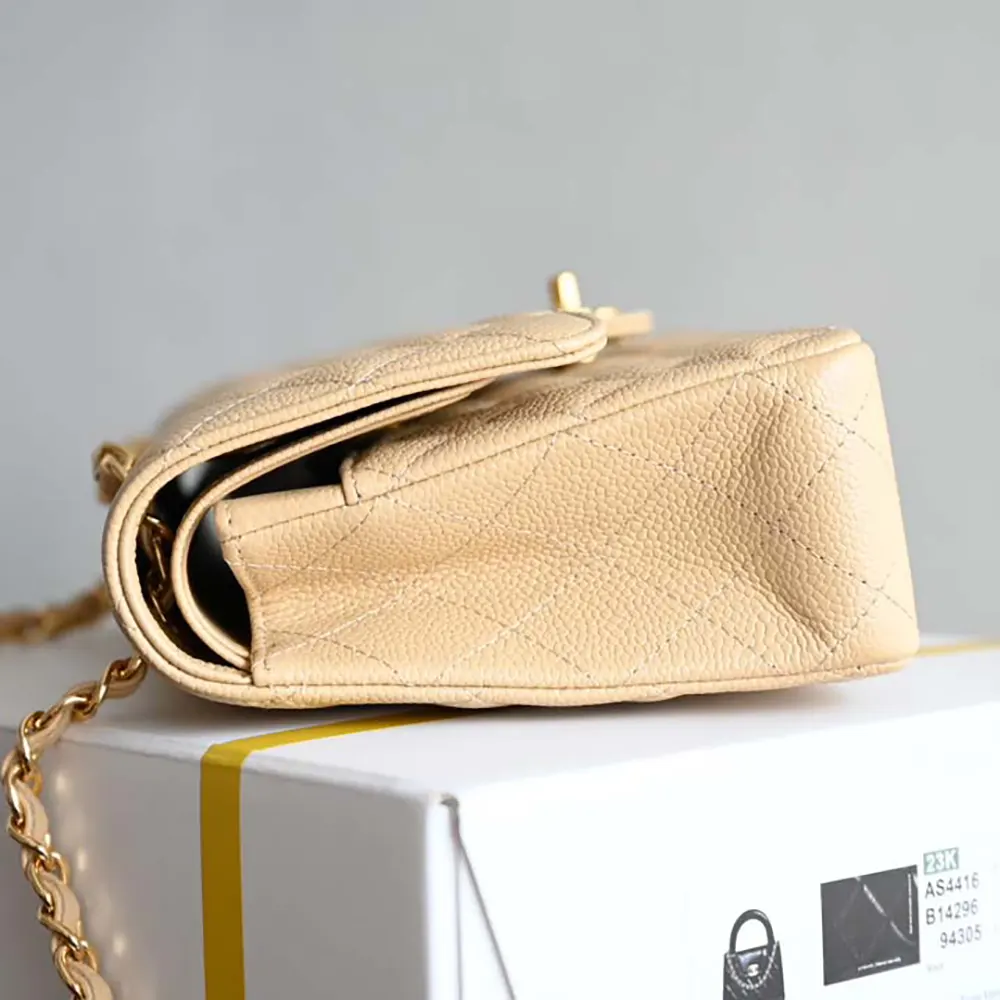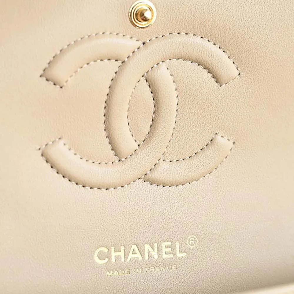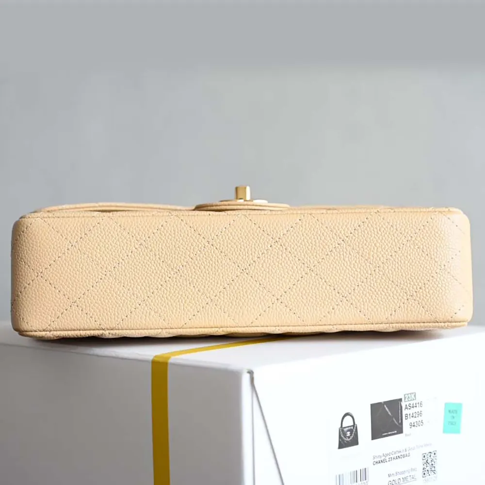 Chanel Imitation Women Classic 11.12 Handbag Grained Shiny Calfskin Gold-Tone Metal-Beige