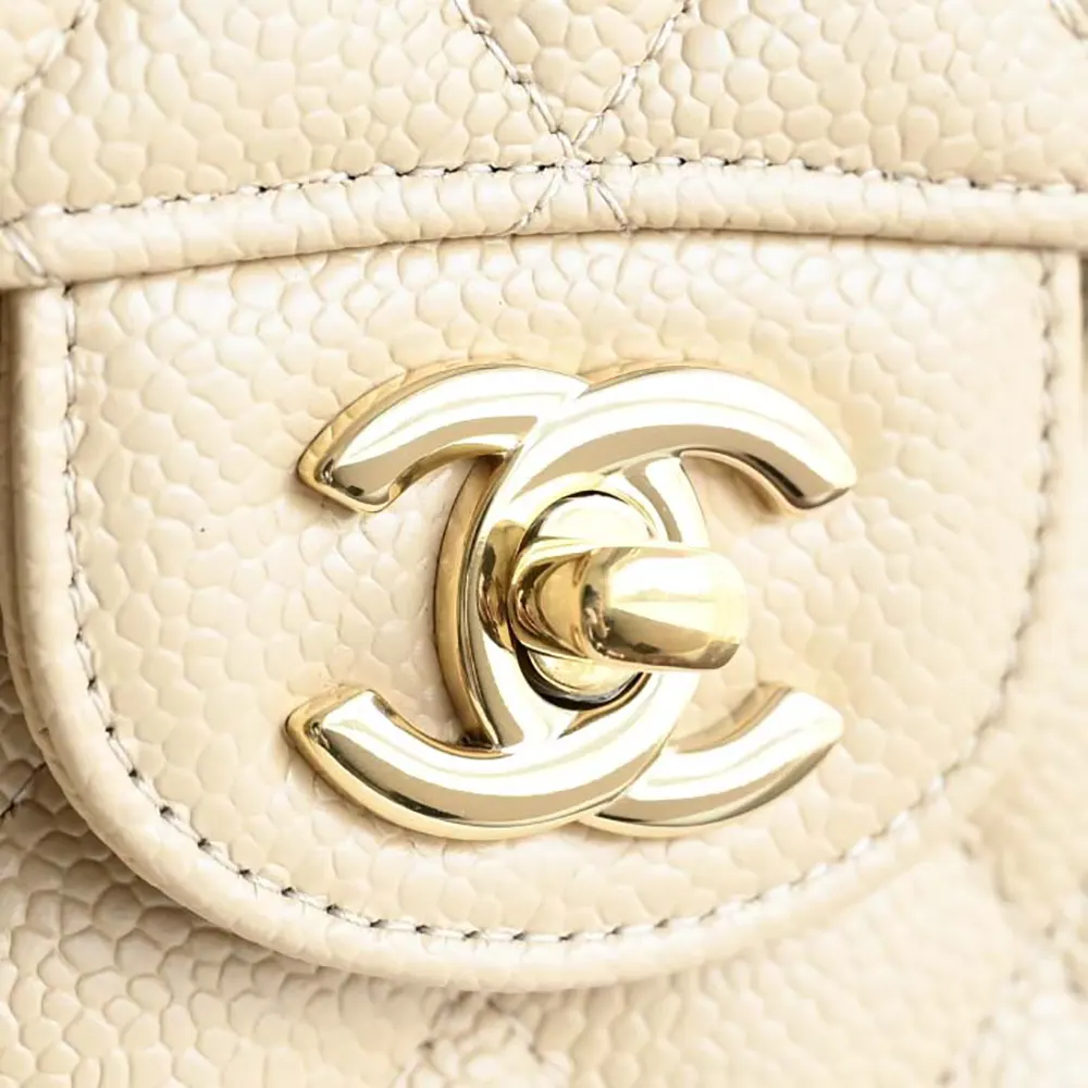 Chanel Women Classic 11.12 Handbag Grained Shiny Calfskin Gold-Tone Metal-Beige