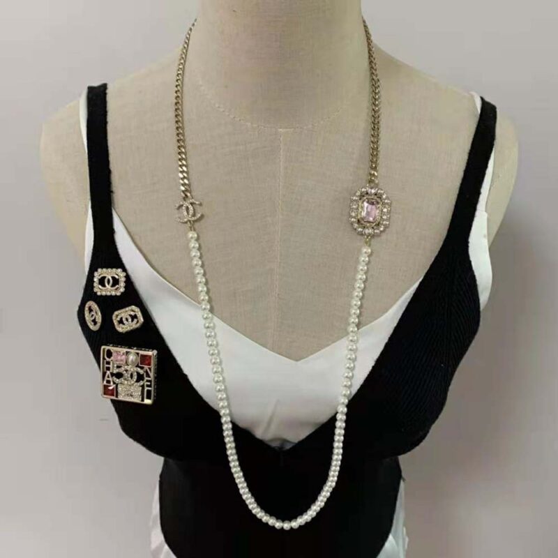 Chanel Women Long Necklace in Metal Resin Glass Pearls and Strass