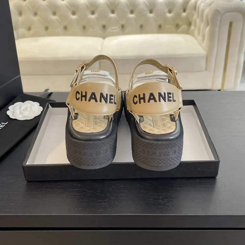 Chanel Women Open Toe Sandal in Calfskin Leather Gold
