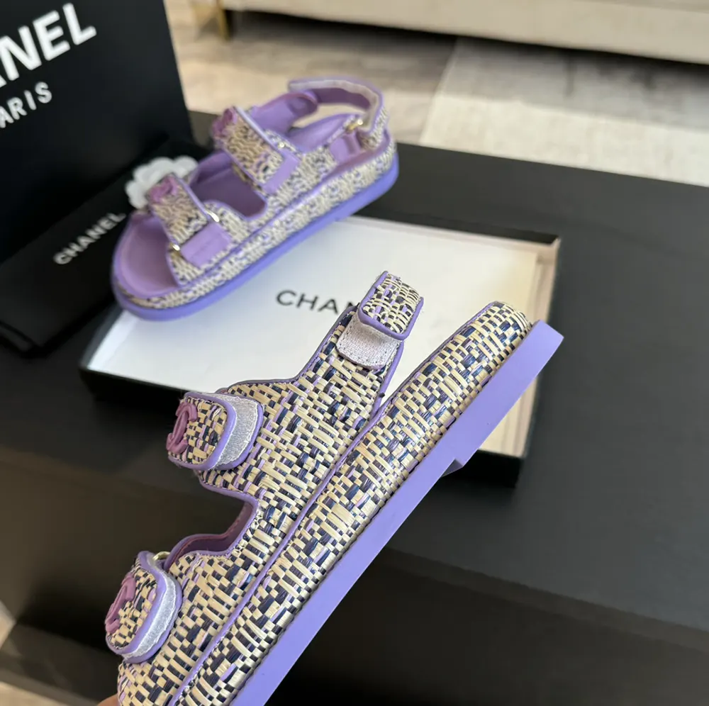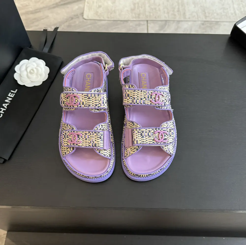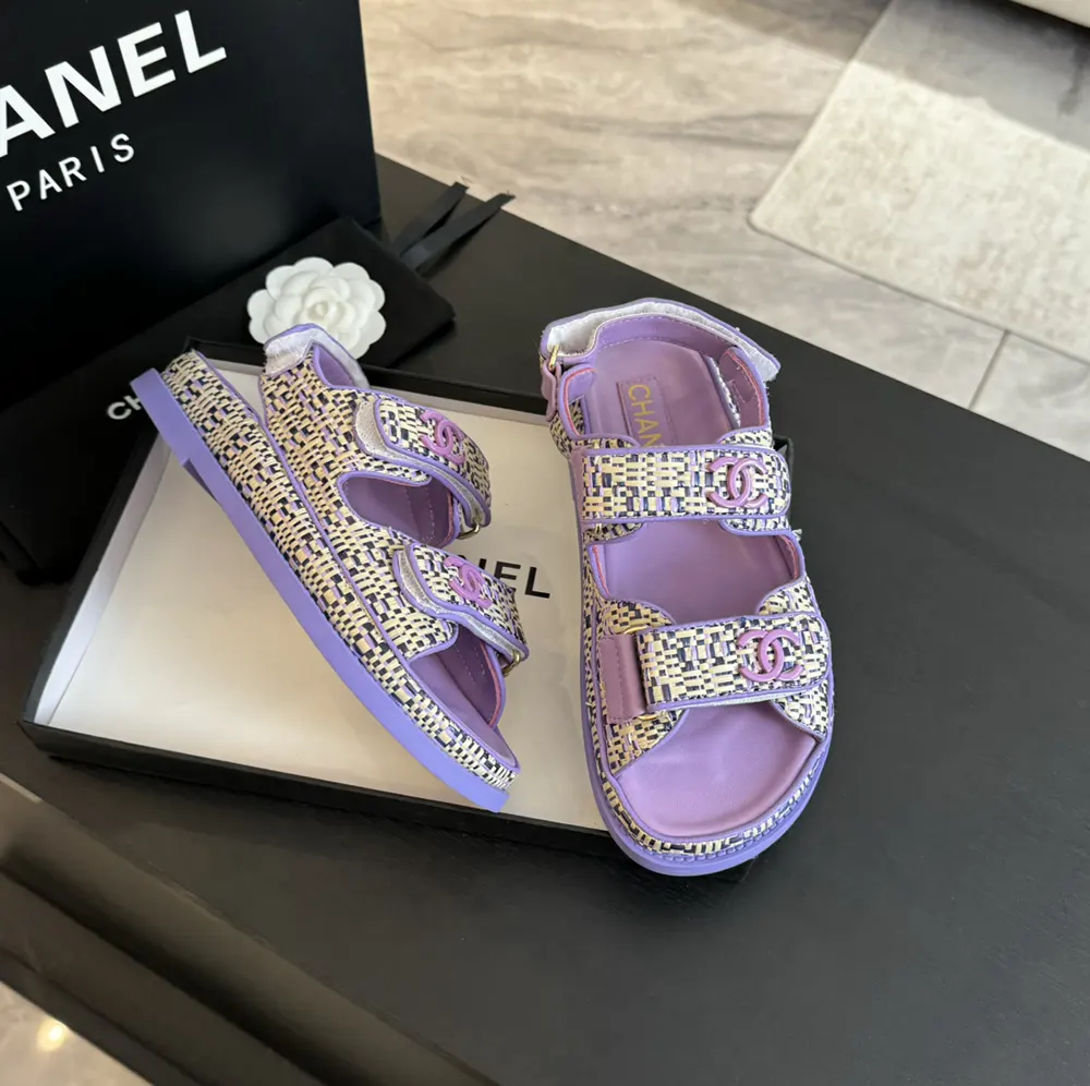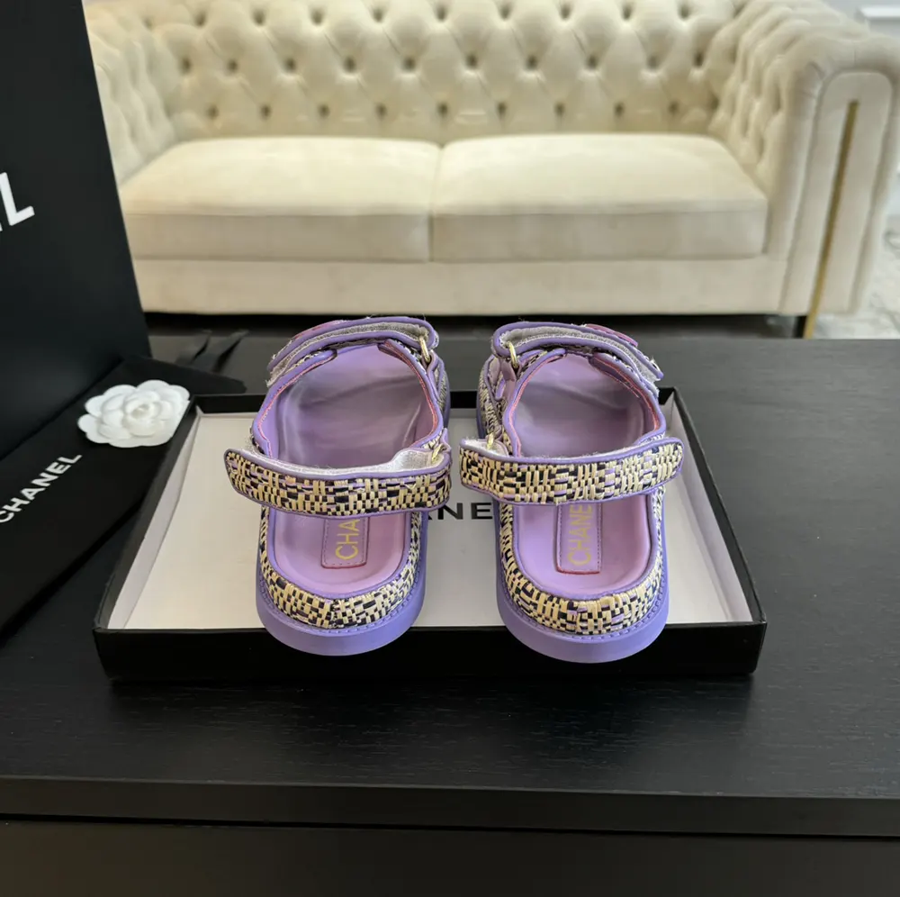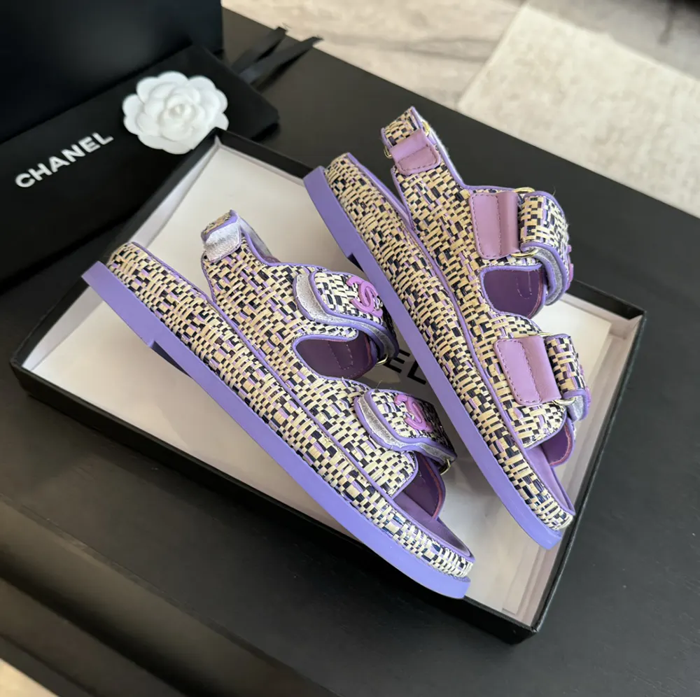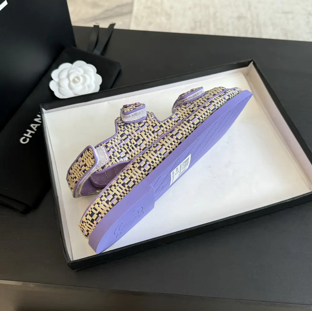 Chanel Women Sandals AAA-grade Dupe Braided Fabric Purple 1 cm Heel