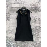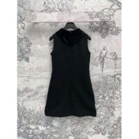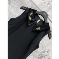 Dior CD Women CD A-Line Embroidered Dress Black Wool Silk Dragonfly Embroidery