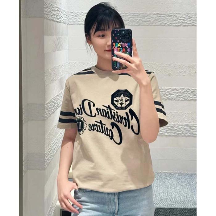 Dior CD Women Christian Dior Couture Relaxed-Fit T-Shirt Beige Cotton Jersey