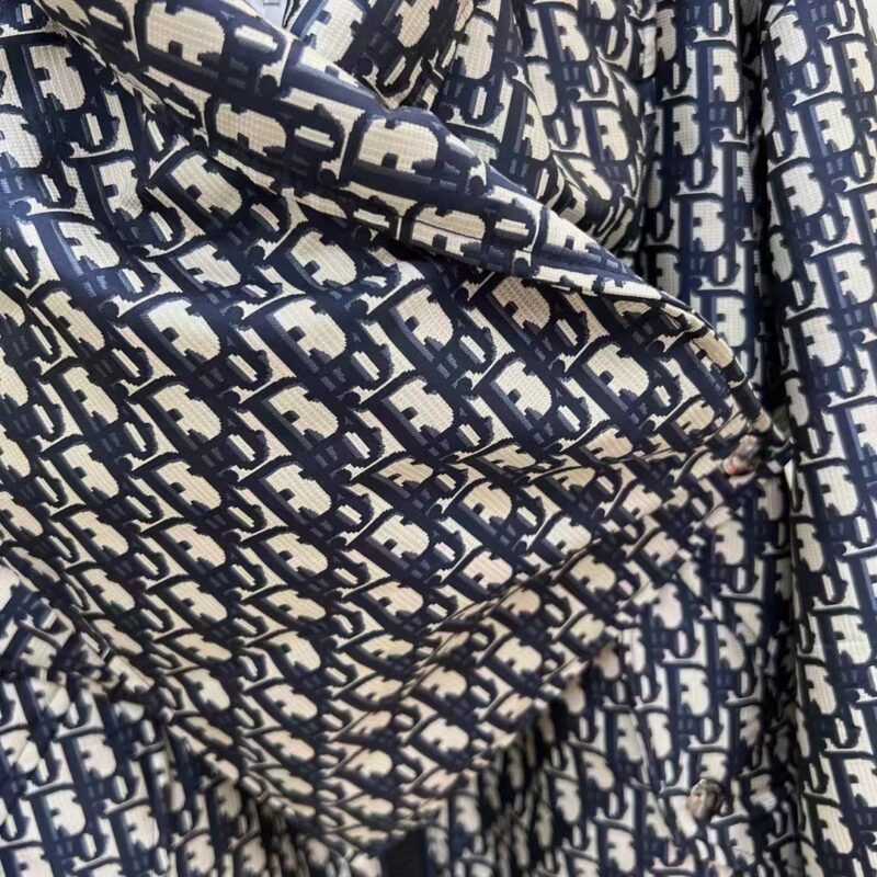 - Blue and Ecru Technical Taffeta Jacquard with Dior Oblique Motif