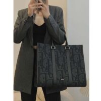 - The silhouette is crafted in black Maxi Dior Oblique jacquard, offering a new take on the iconic House motif, and is enhanced by the Dior signature.