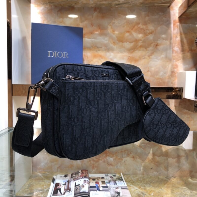 Dior Unisex CD Saddle Triple Pouch Black Dior Oblique Jacquard