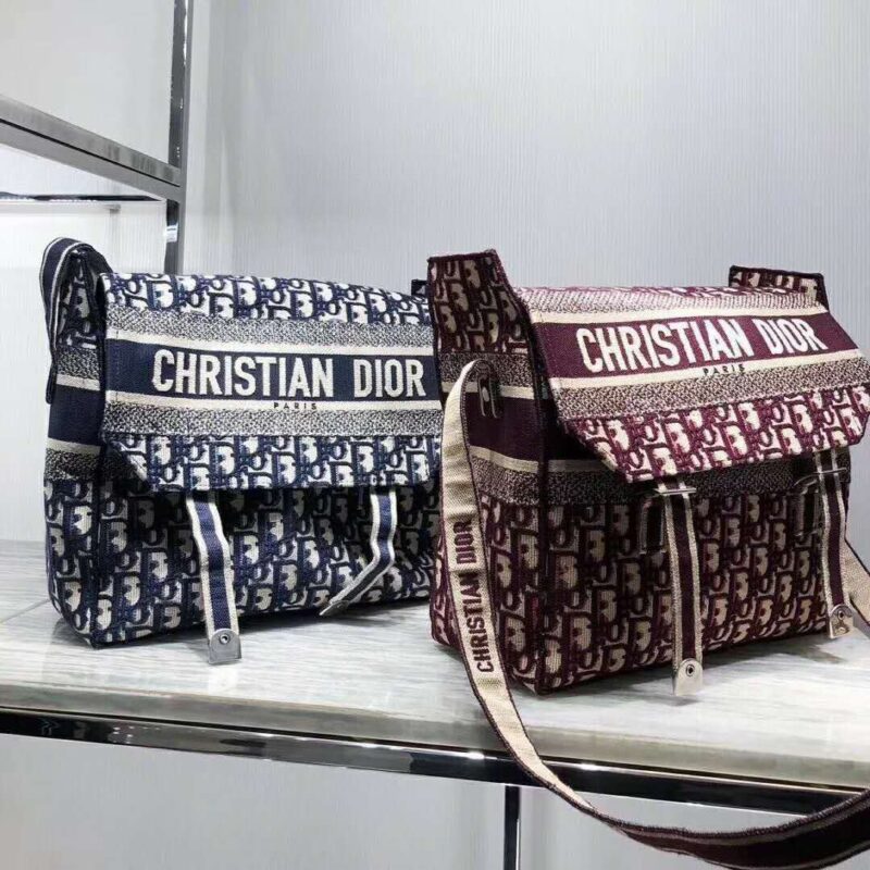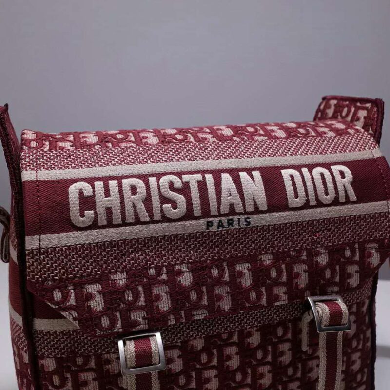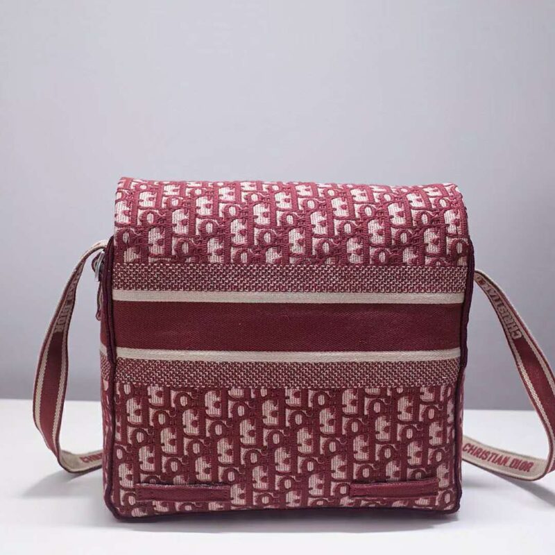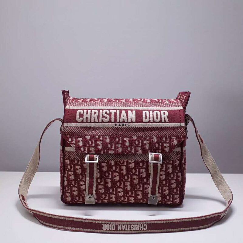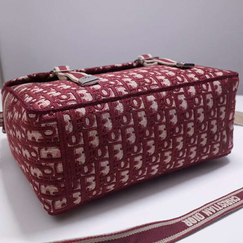 - Messenger bag in burgundy Dior Oblique embroidered canvas.