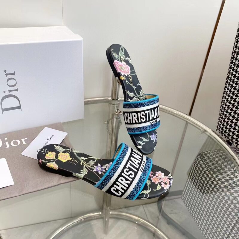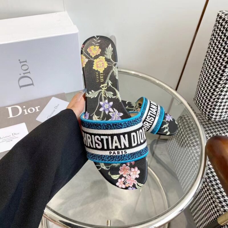 Dior Women CD Dway Slide Black Multicolor Embroidered Cotton Dior Petites Fleurs