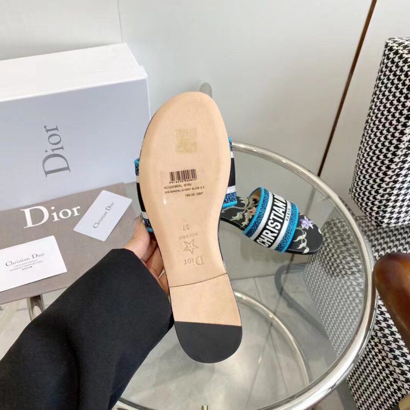 Dior Women CD Dway Slide White Black Embroidered Cotton Plan De Paris