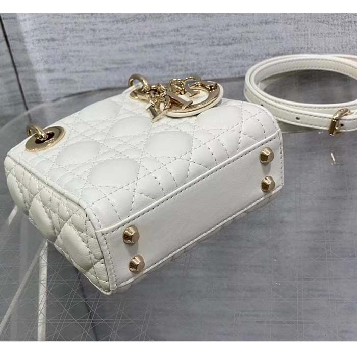 - Crafted in latte lambskin with signature Cannage topstitching, its iconic silhouette is embellished with a D.I.O.R. charm.