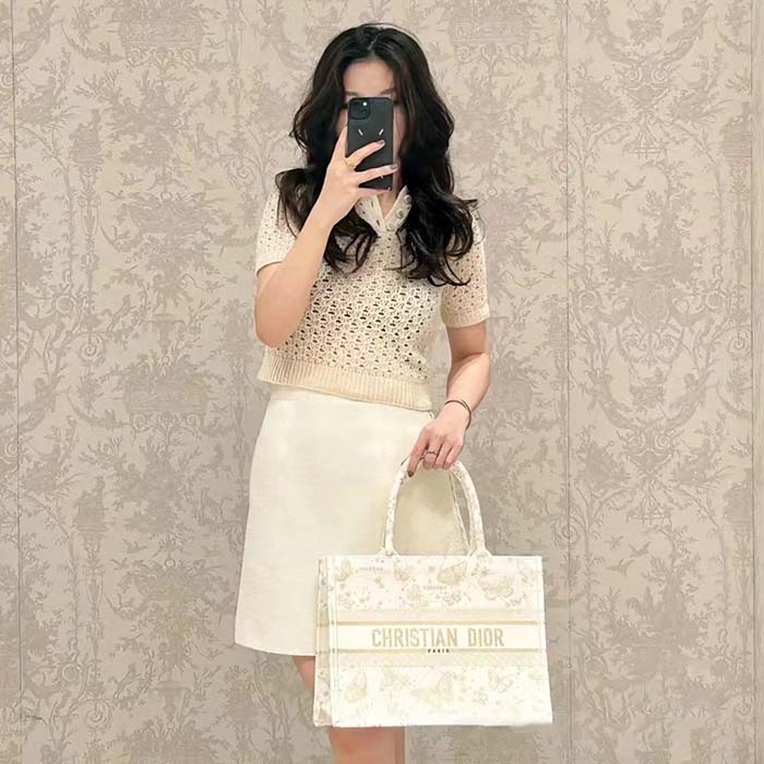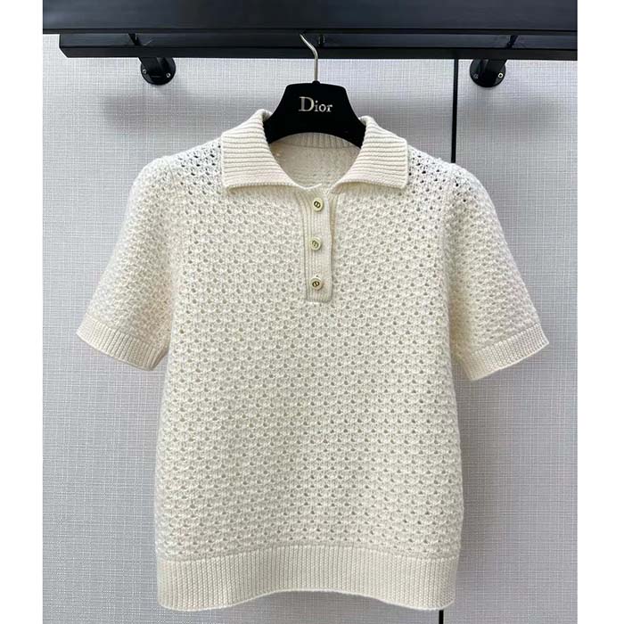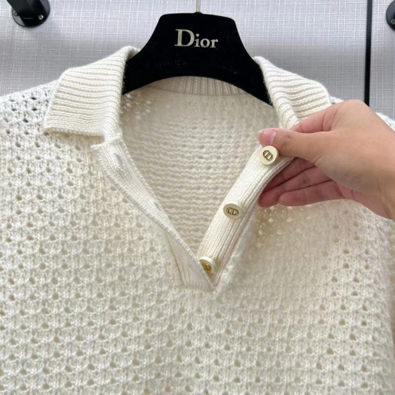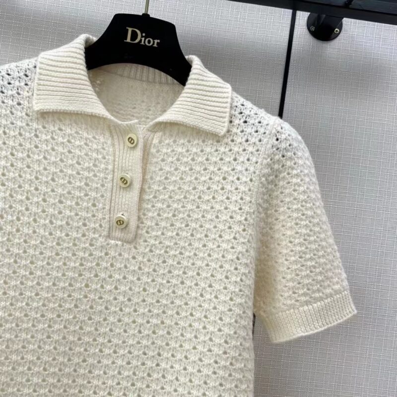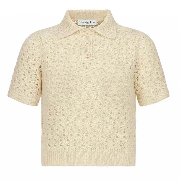 - Completed by slightly puffed short sleeves, CD buttons and ribbed finishes, the top can be styled with one of the season’s mid-length skirts.