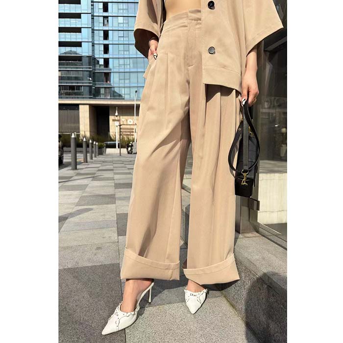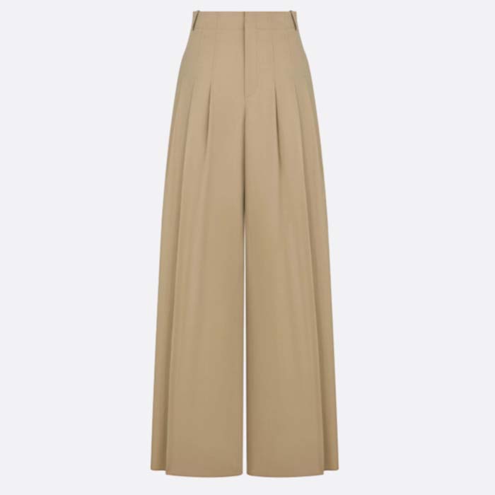 - Crafted in beige cotton gabardine, they feature an ultra-high waist and flared cut, while a wide pleat along the leg adds volume.