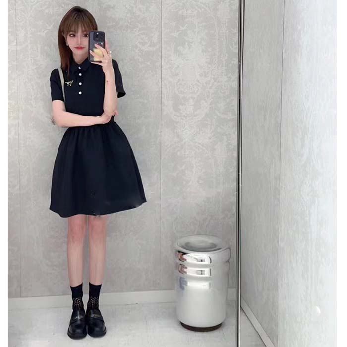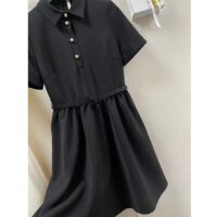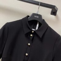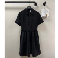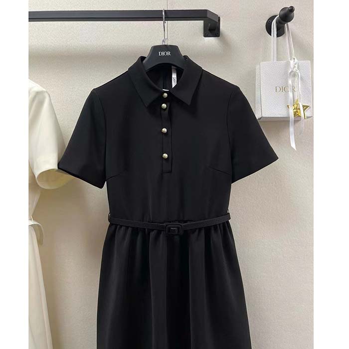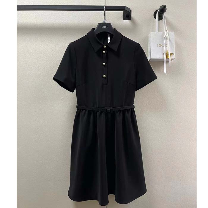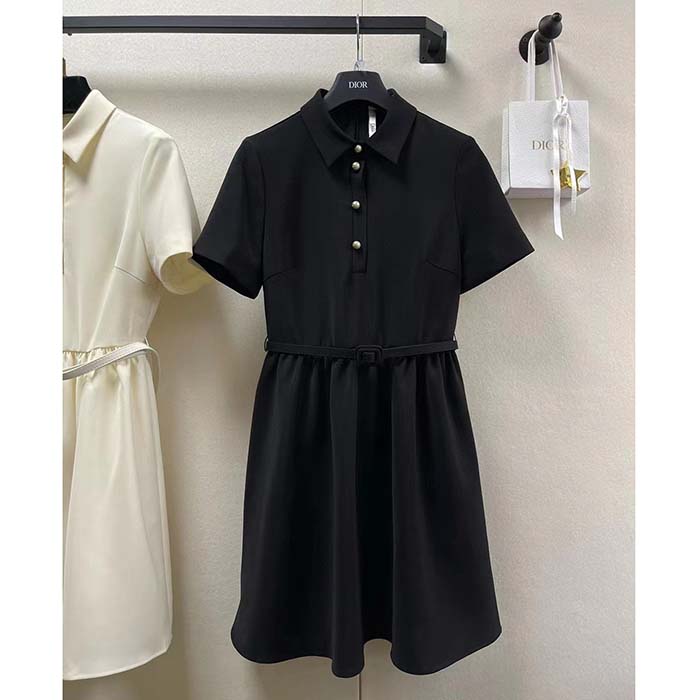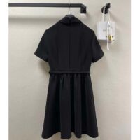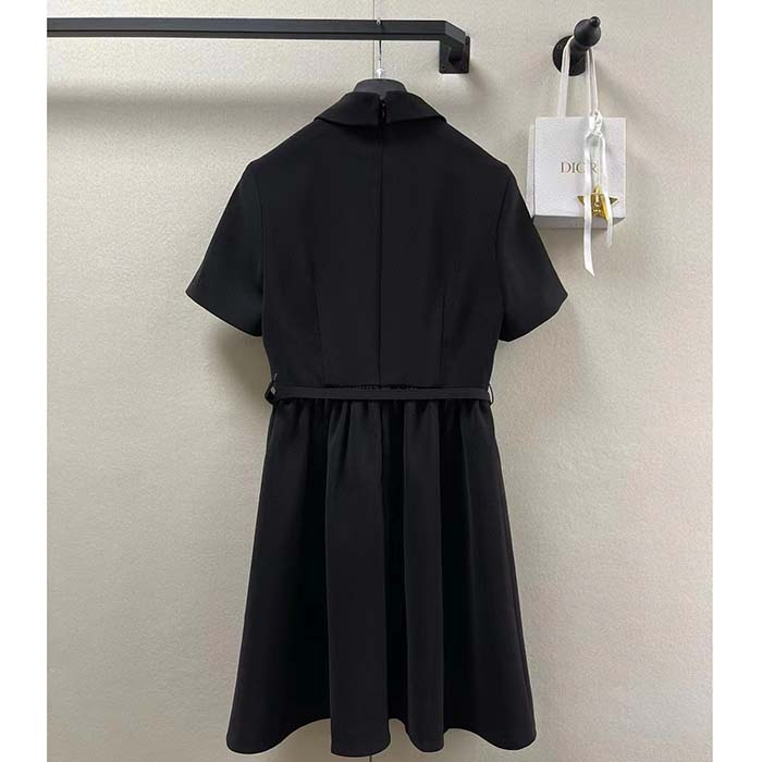 Dior Women CD Short Belted Shirt Dress Black Wool Silk