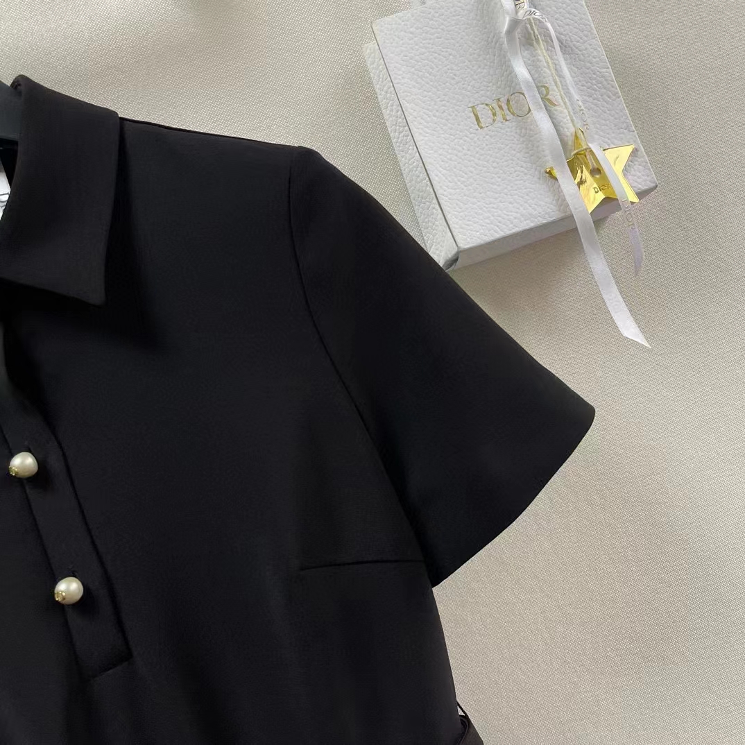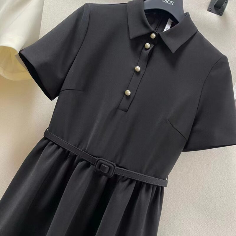 Dior Mirror Copy Women CD Short Belted Shirt Dress Black Wool Silk