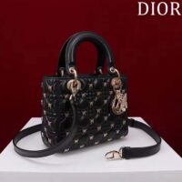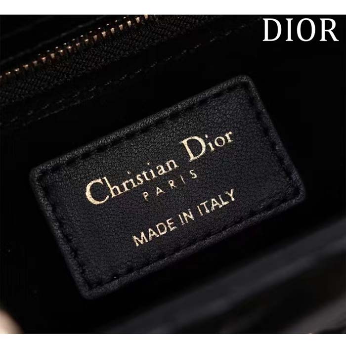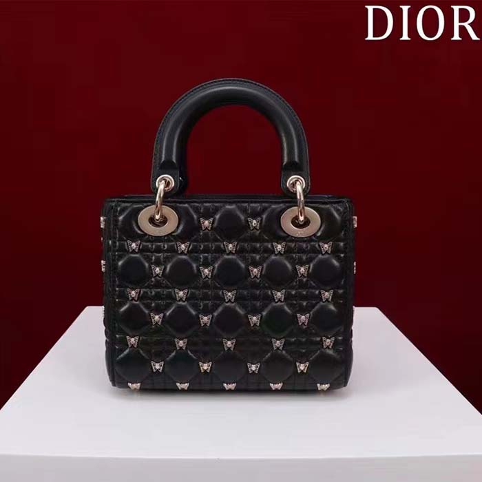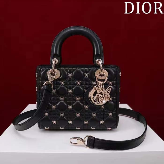 Dior Authentic Quality Women CD Small Lady Dior Bag Black Cannage Lambskin Gold-Finish Butterfly Studs