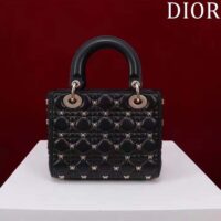 Dior Women CD Small Lady Dior Bag Black Cannage Lambskin Gold-Finish Butterfly Studs