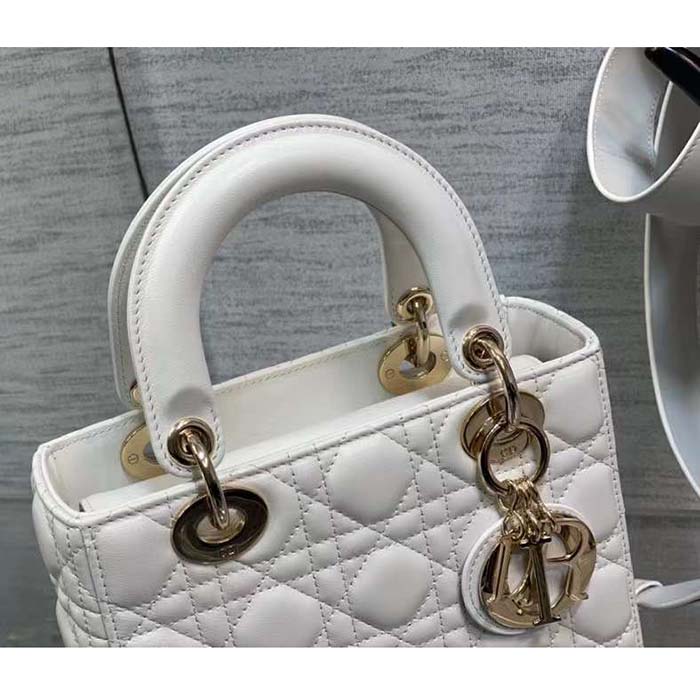 Dior Authentic Quality Women CD Small Lady Dior Bag Latte Grained Cannage Calfskin