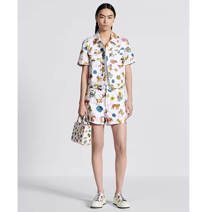 Dior Women CD Mini Lady Dior Bag White Multicolor Calfskin Toile De Jouy Fantastica Print Embroidery