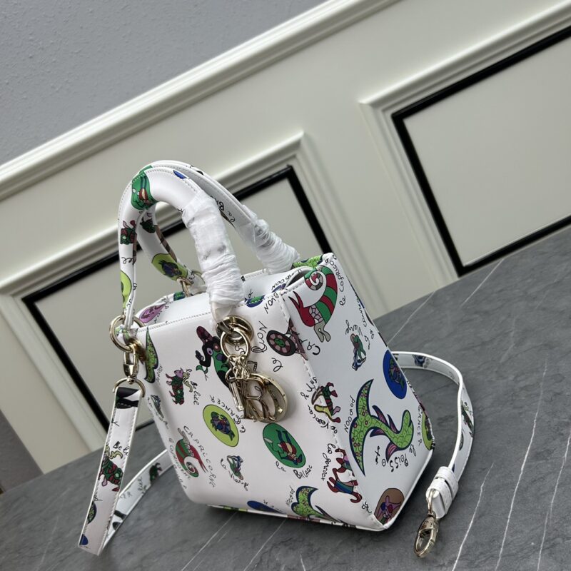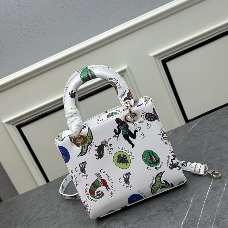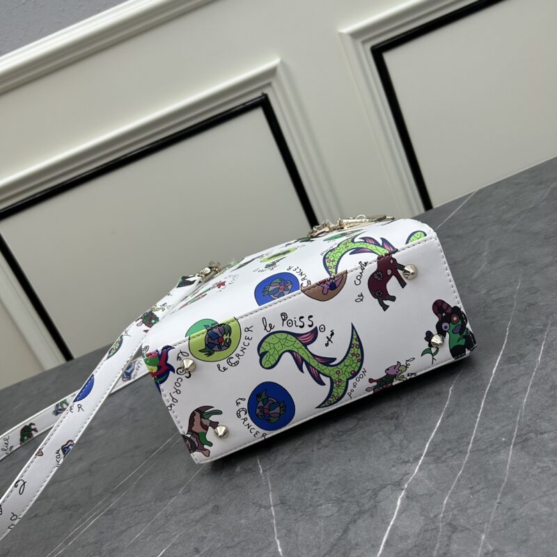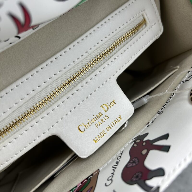 Dior Women CD Small Lady My ABCDIOR Bag White Multicolor Calfskin Dragon Zodiac Print
