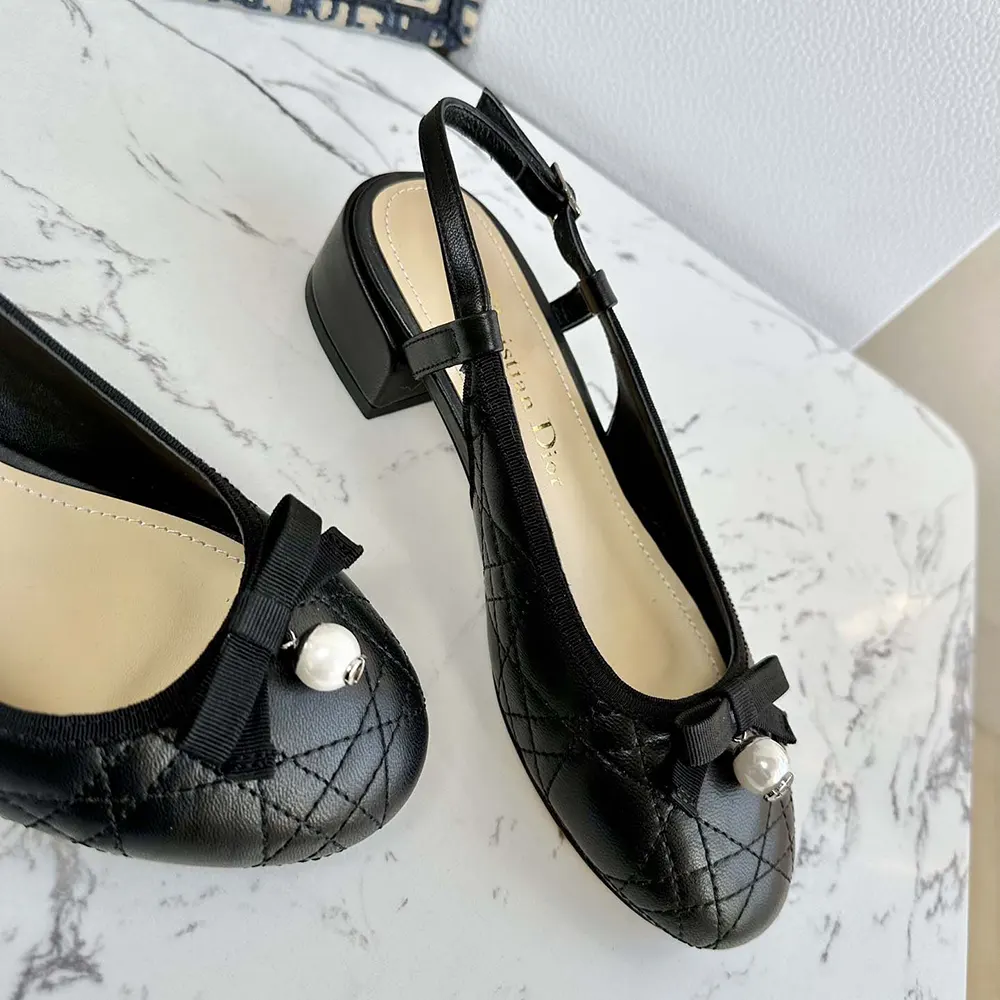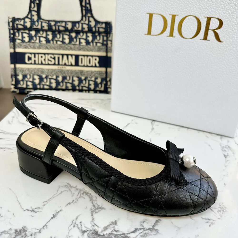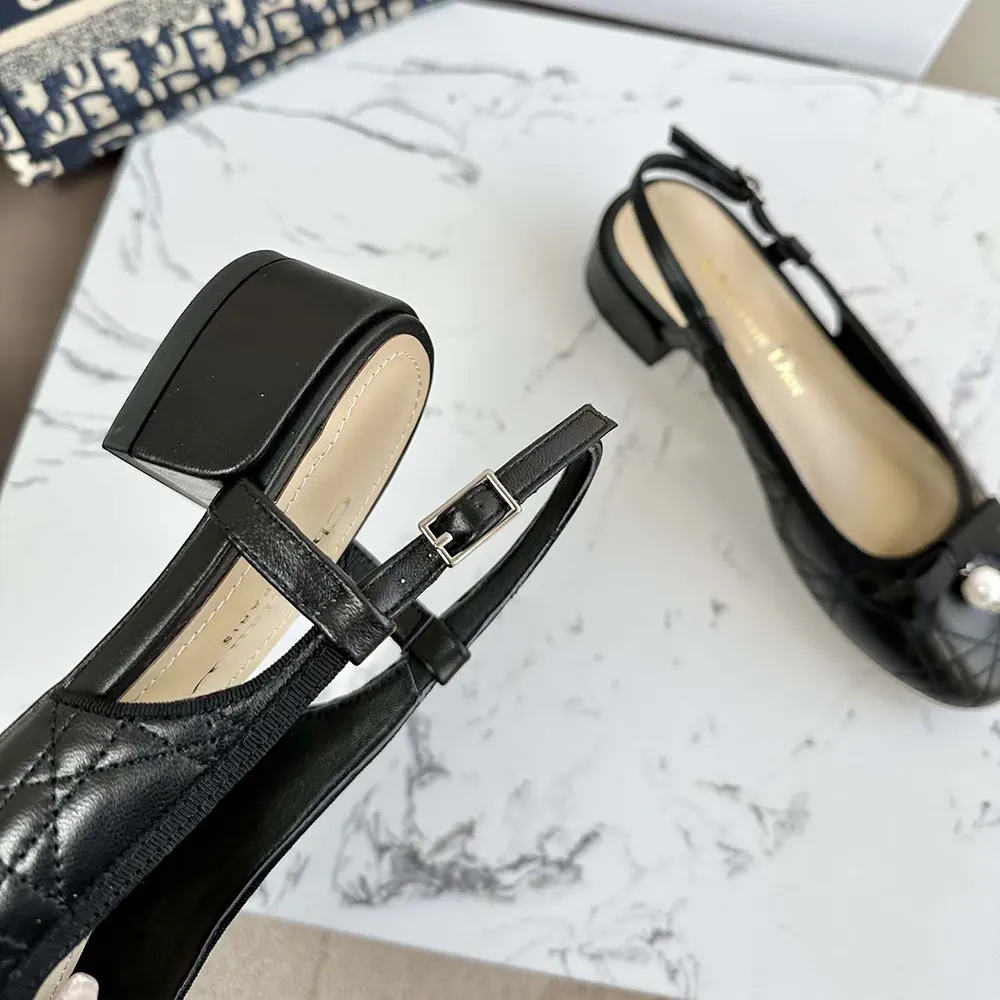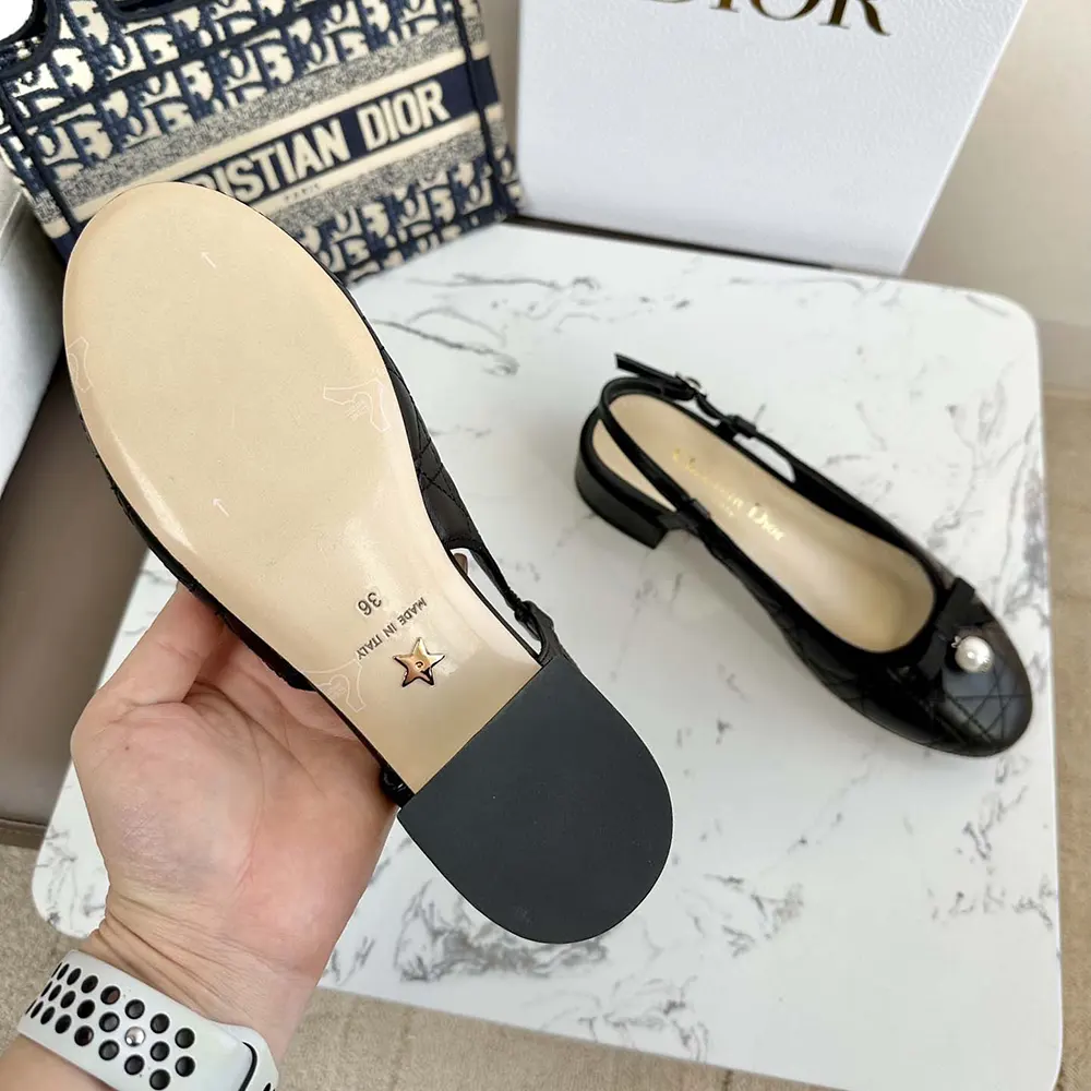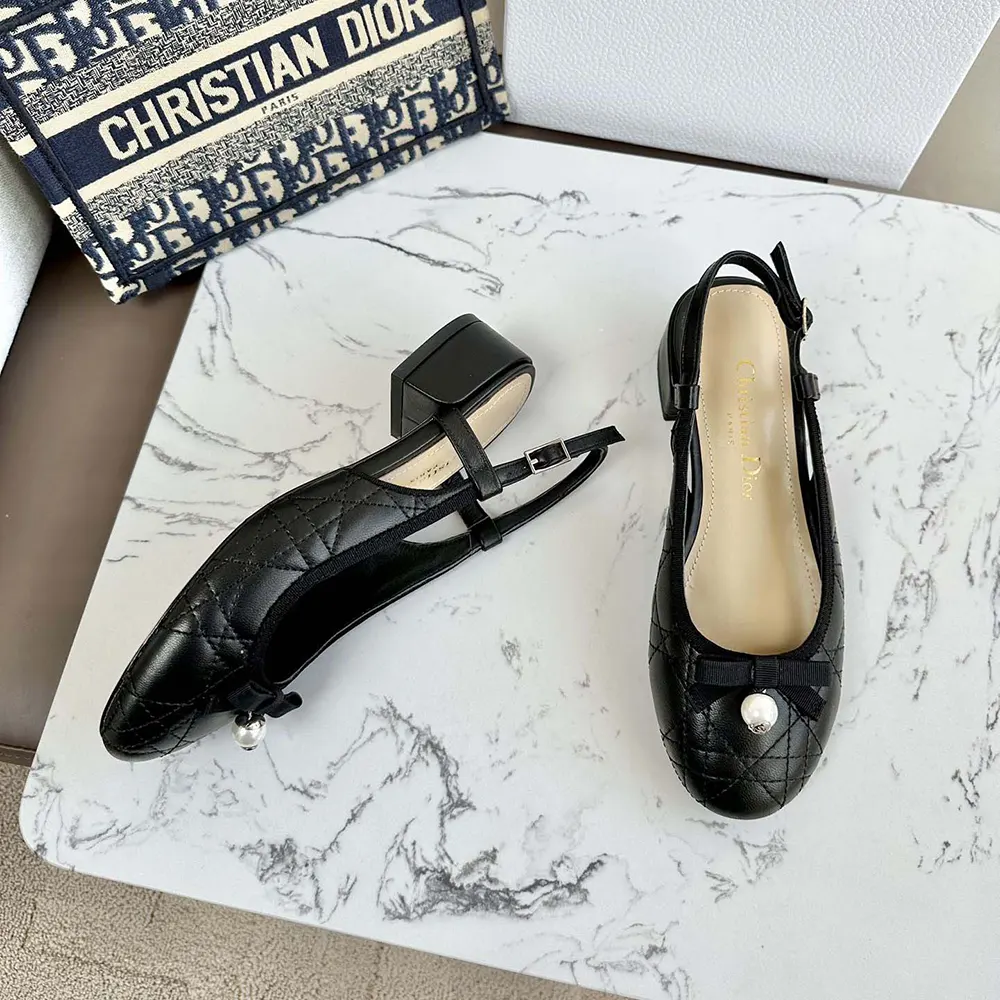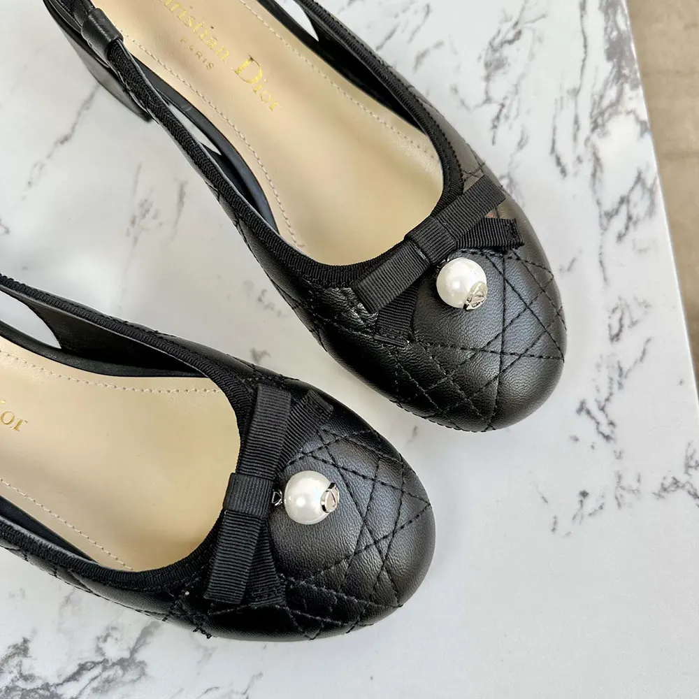 Dior Mirror Copy Women Dior Women Ballet Slingback Pump Black Quilted Cannage Calfskin