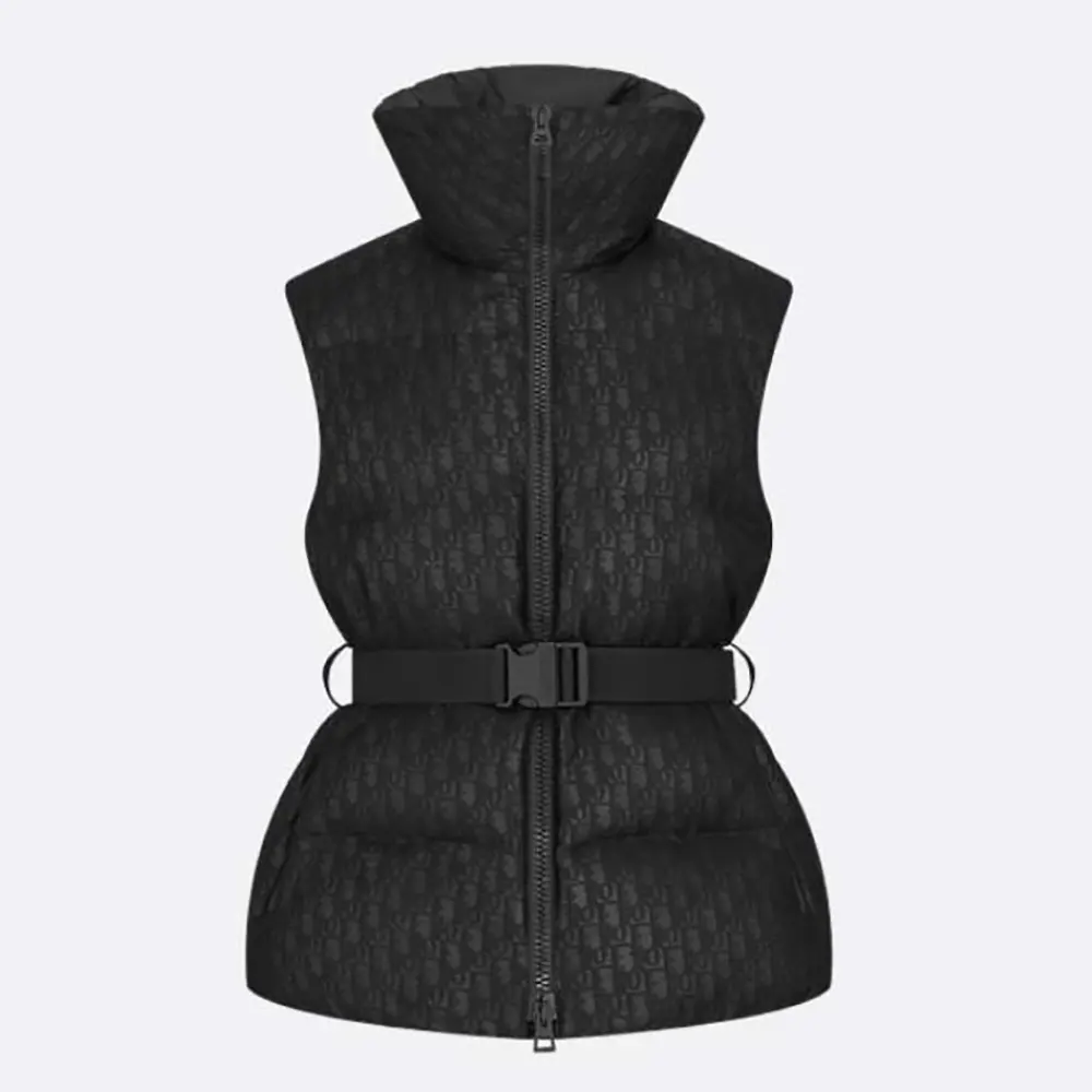 DiorAlps Belted Puffer Vest Black Quilted Technical Taffeta Jacquard