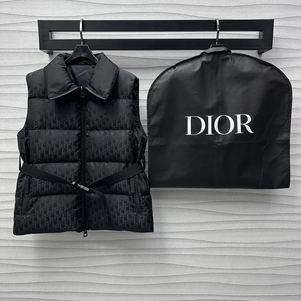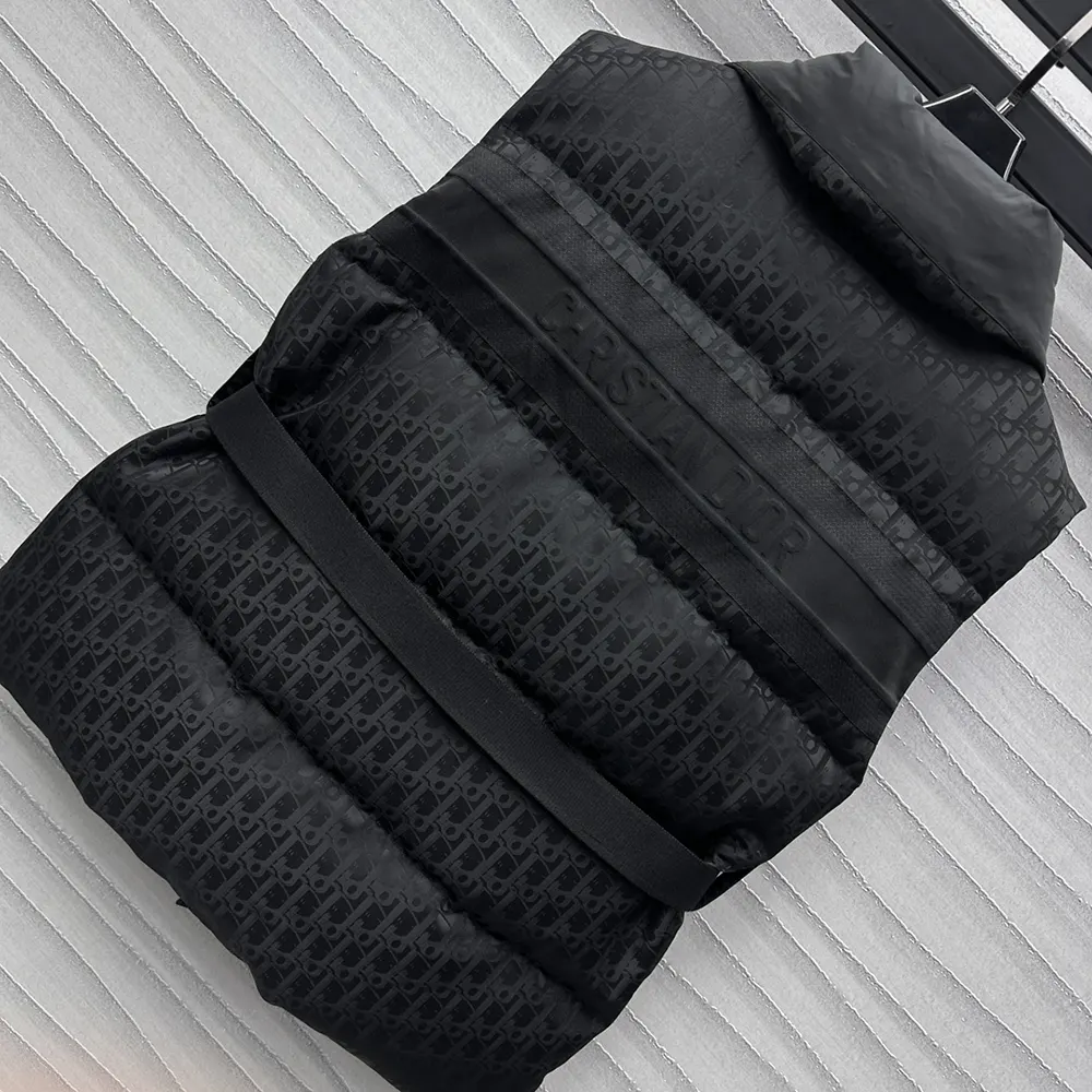 Dior Men DiorAlps Belted Puffer Vest Mirror Copy Black Quilted Technical Taffeta Jacquard $249
