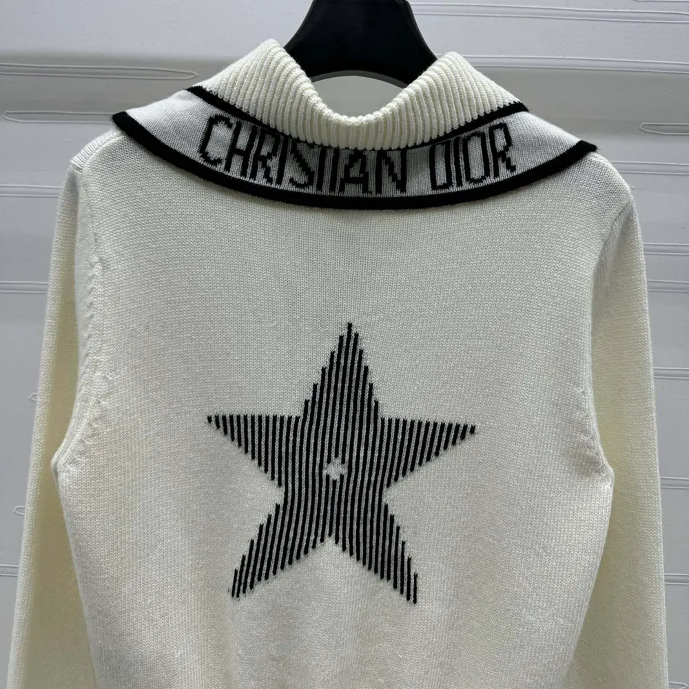 - it features a navy blue Dior Star motif and an intarsia Christian Dior signature on the back. The sweater,
