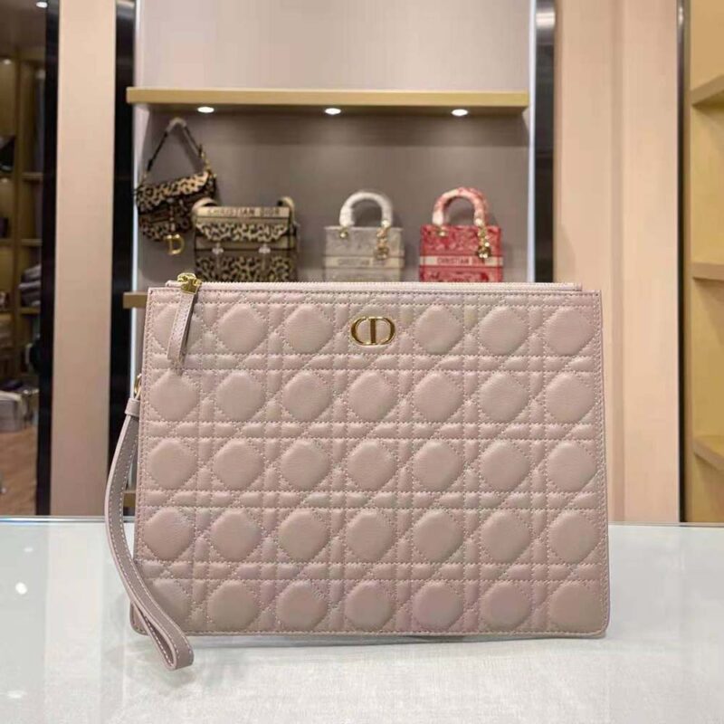 Dior Women Large Dior Caro Daily Pouch Cannage Calfskin-Pink