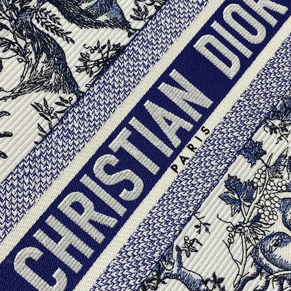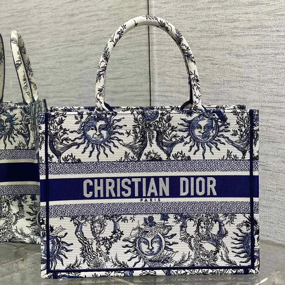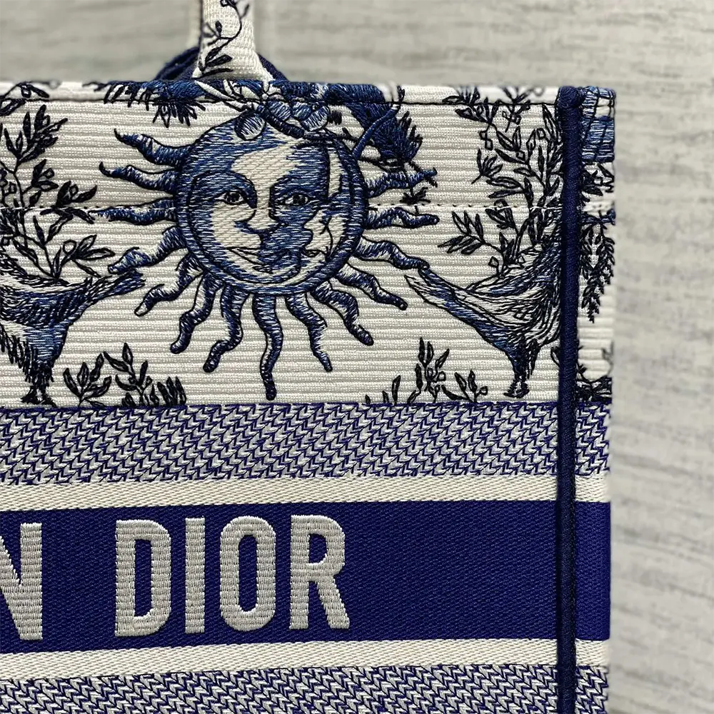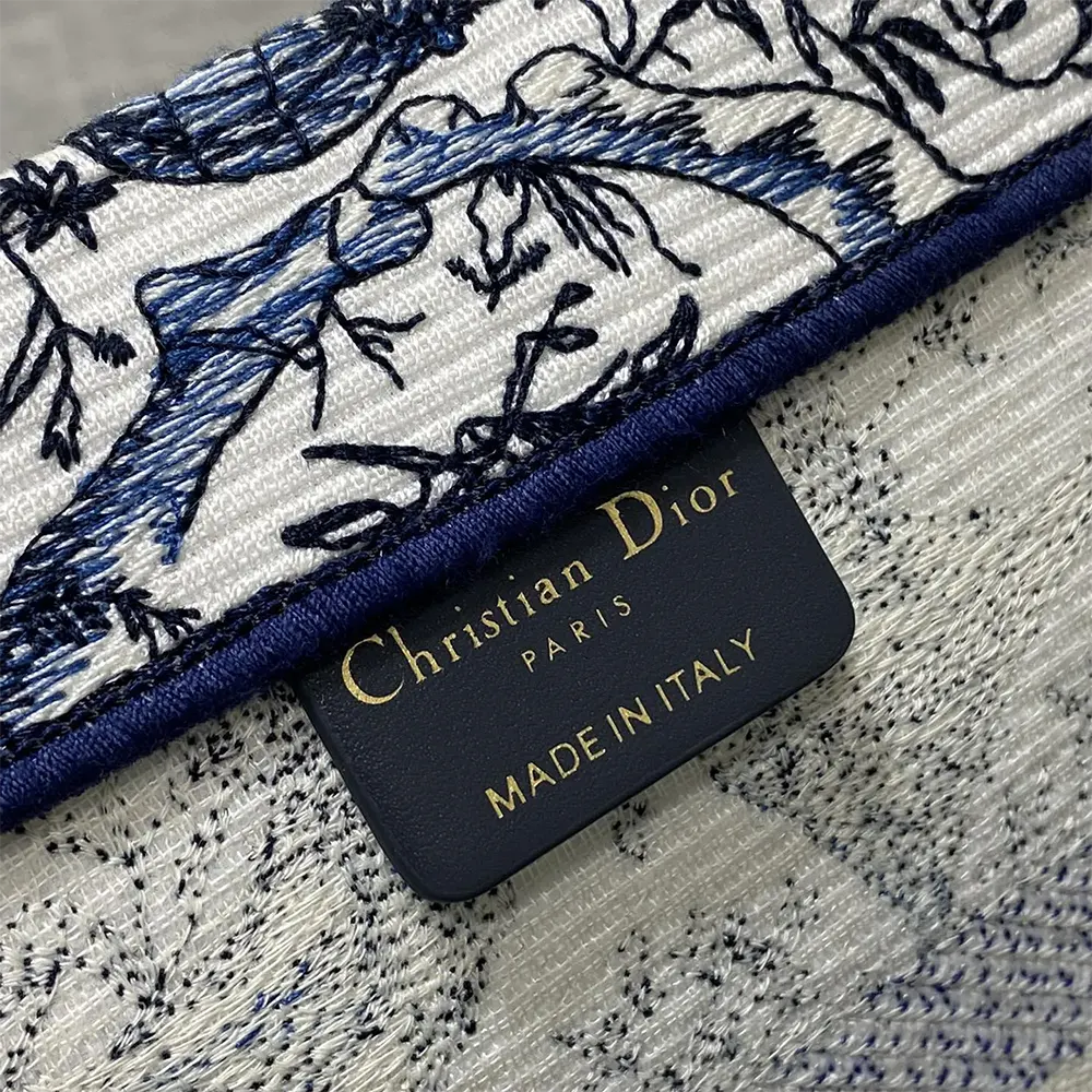 Dior Women Medium Dior Book Tote White and Navy Blue Toile de Jouy Soleil Embroidery
