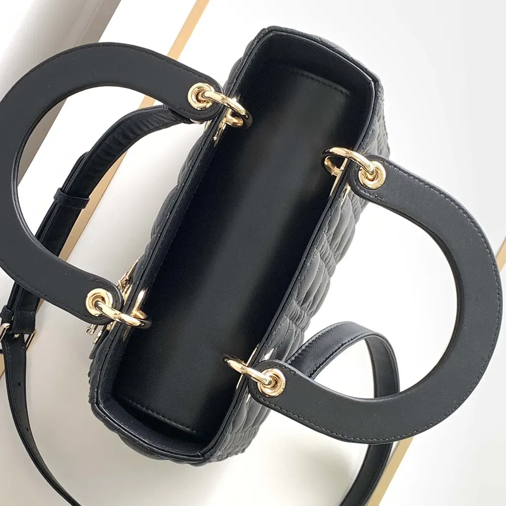 Dior Women Medium Lady Dior Bag Black Cannage Lambskin M0565ONGE