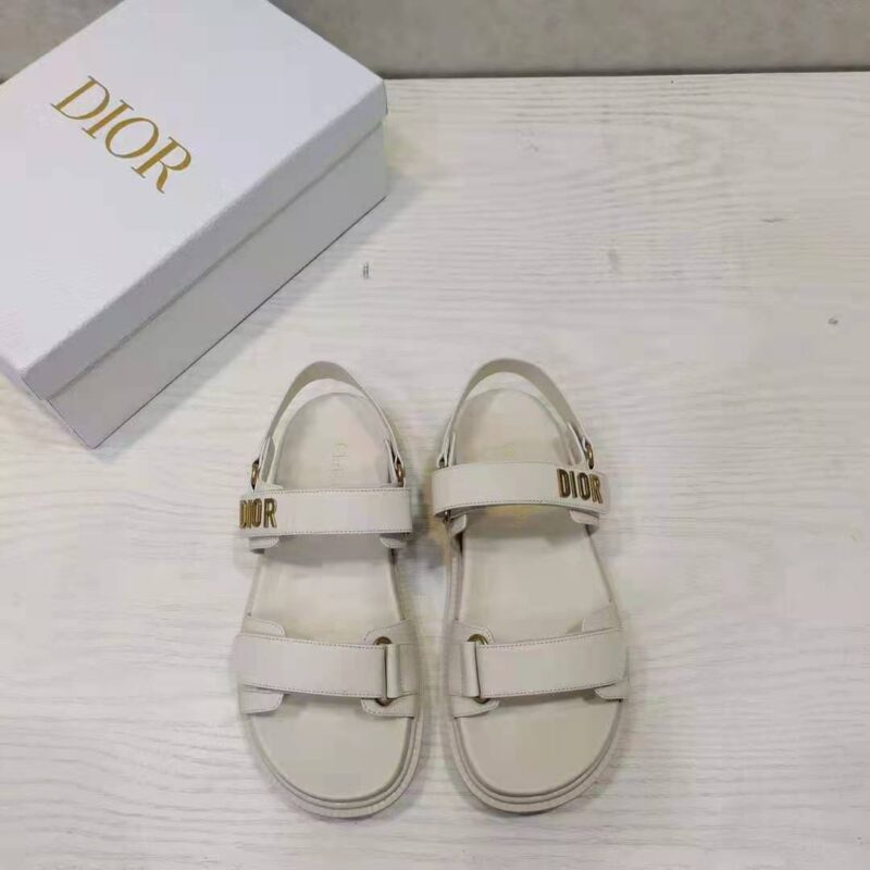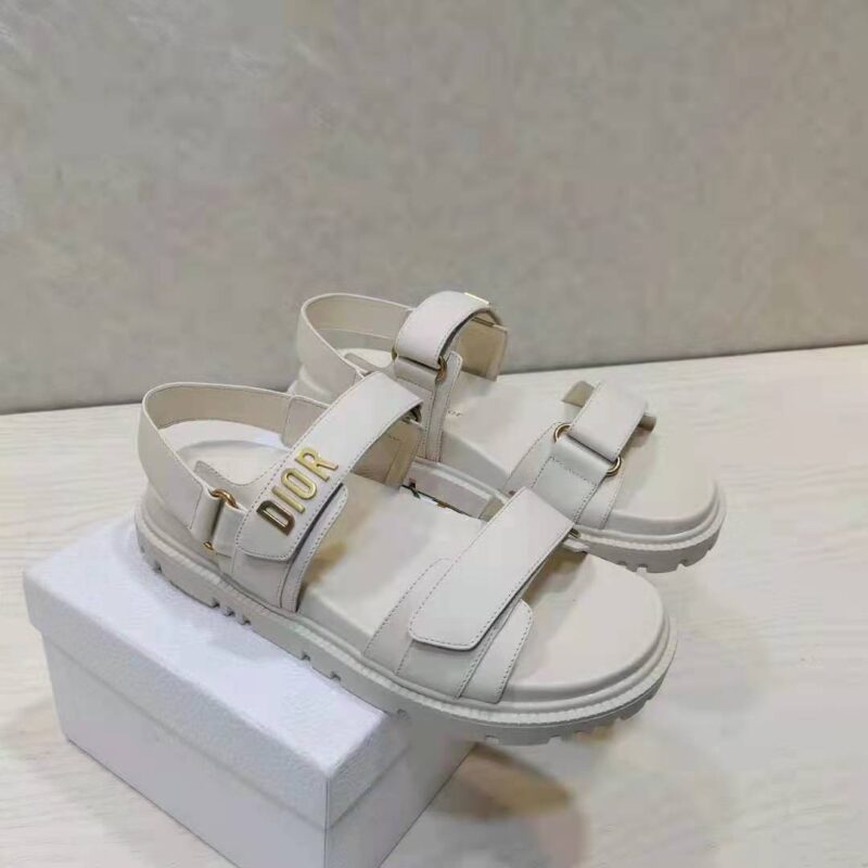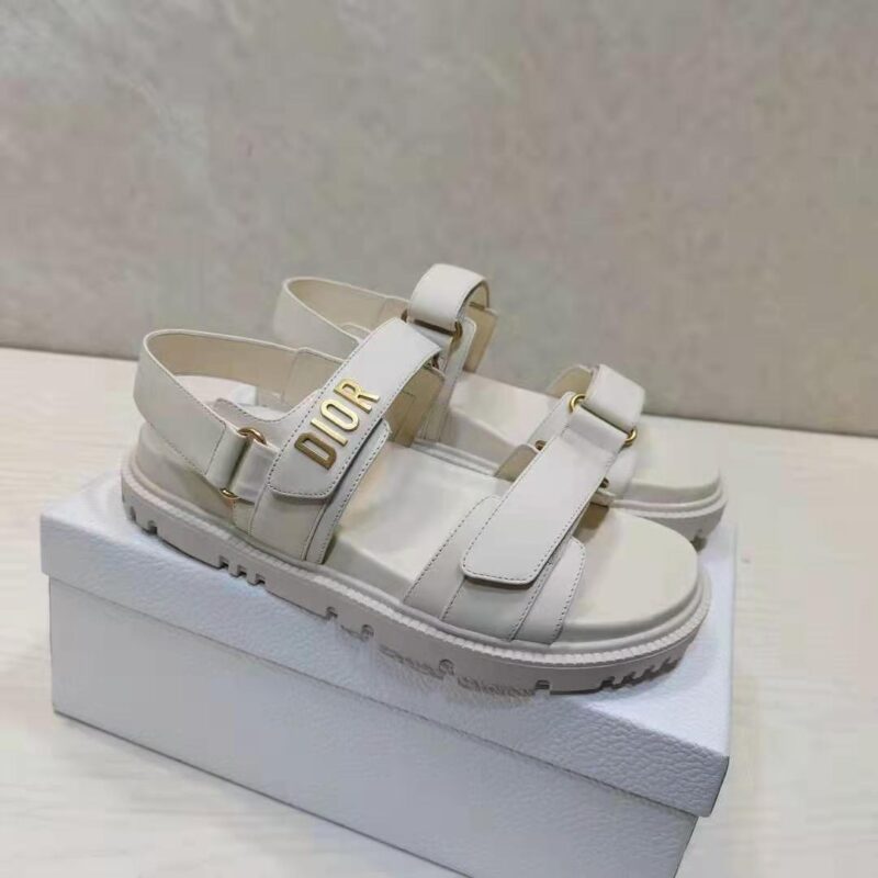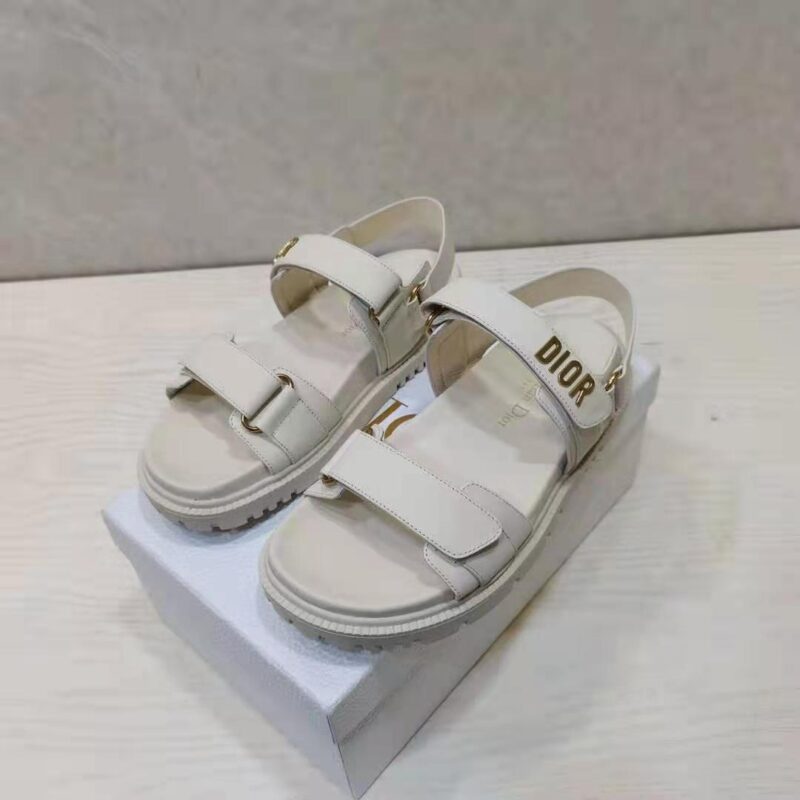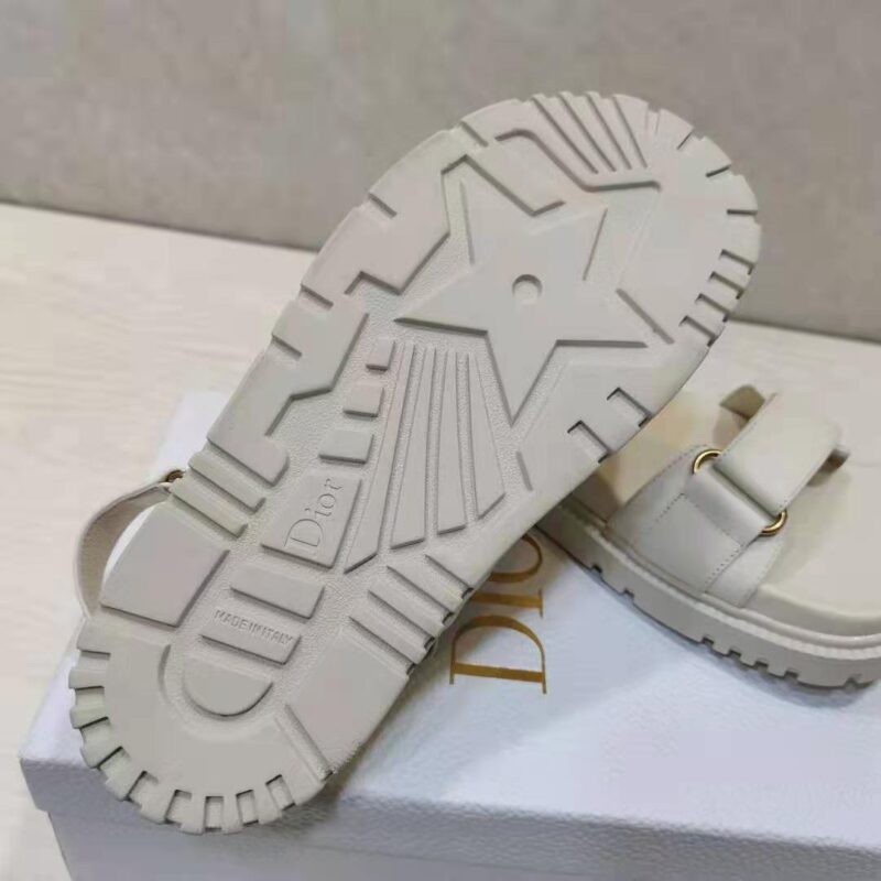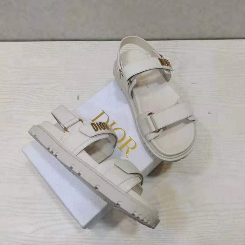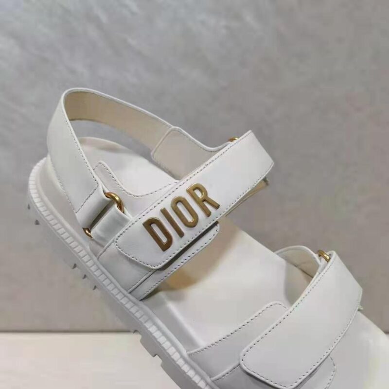 Dior Women Shoes DiorAct Sandal White Lambskin Gold-Finish Metal DIOR Signature