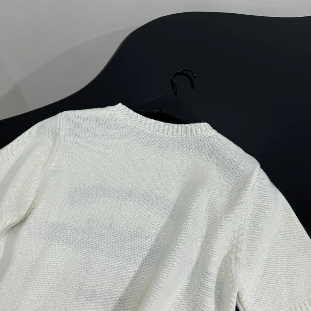 - The short sleeves and ribbed trim complete the sweater, which will elevate any outfit throughout the year.