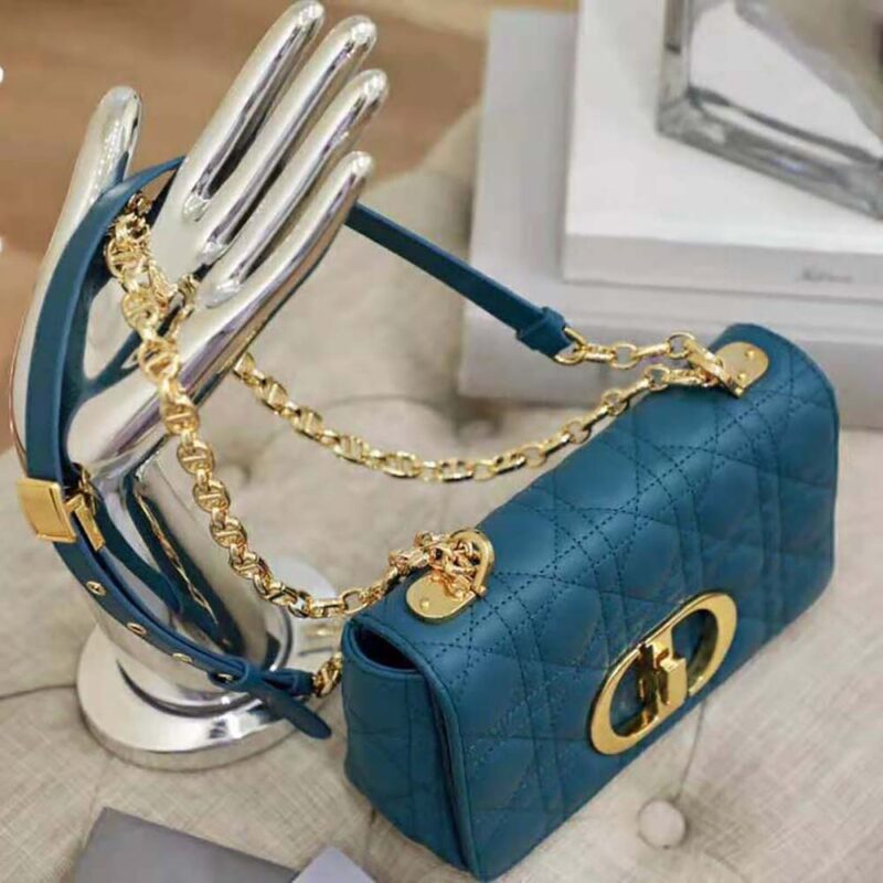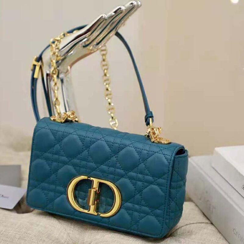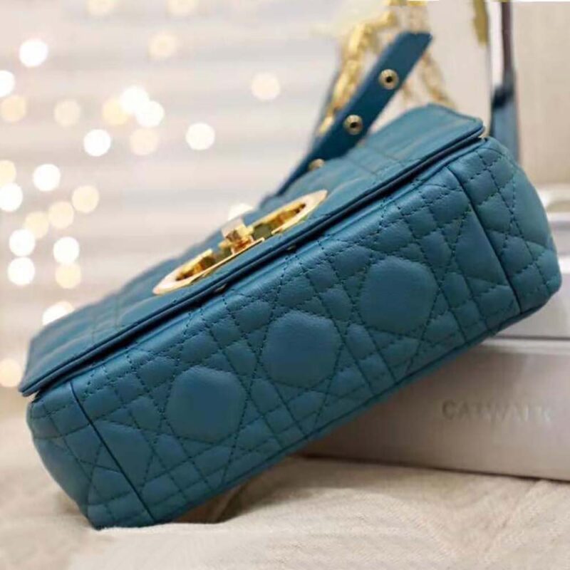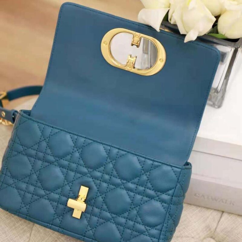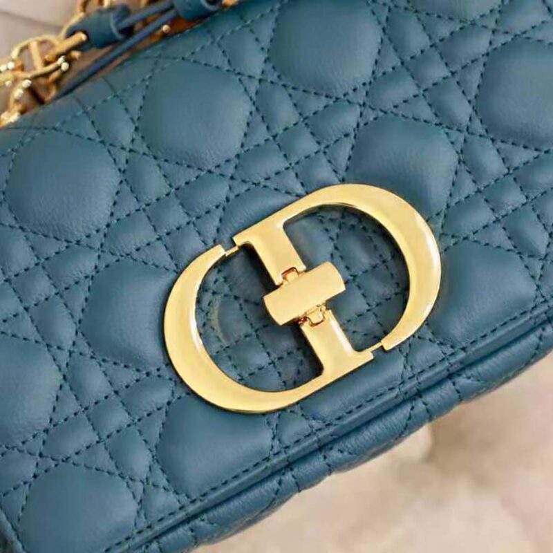 Dior Women Small Dior Caro Bag Supple Cannage Calfskin-Blue