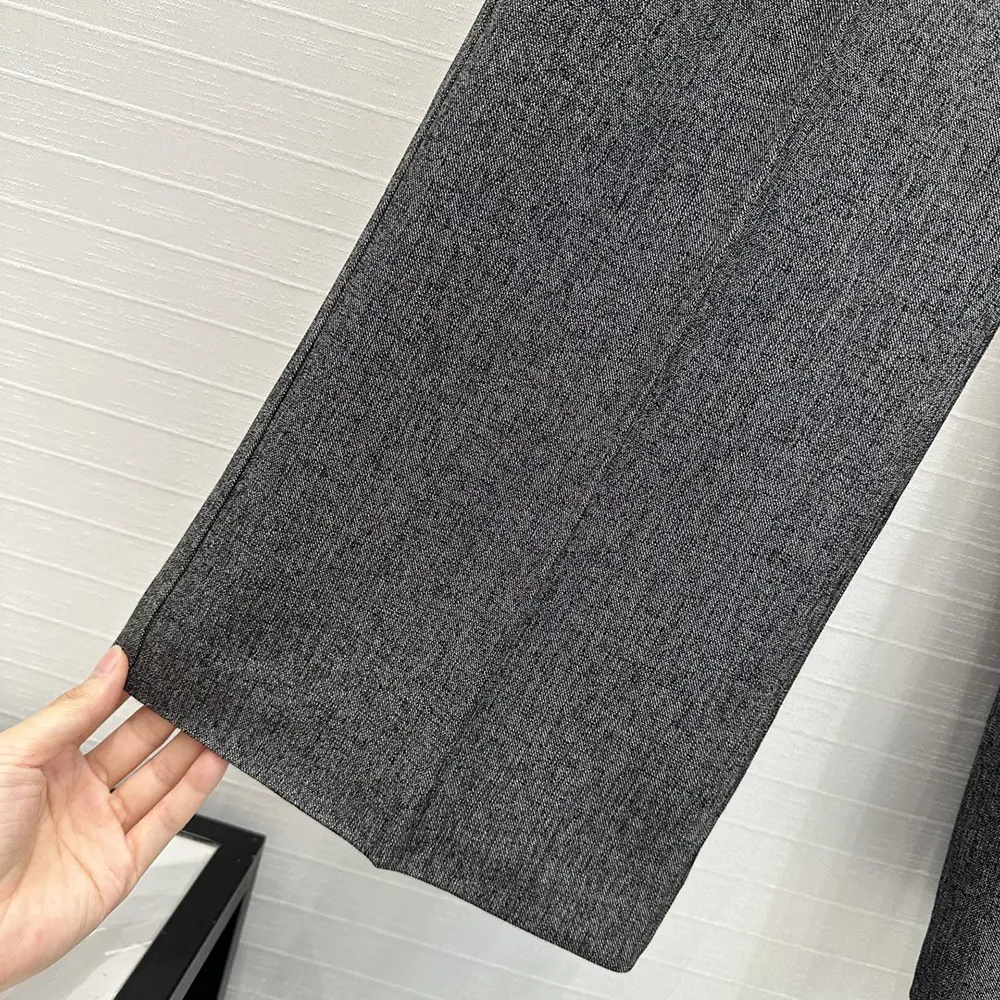 - Crafted in gray end-on-end virgin wool, they feature dart detailing,