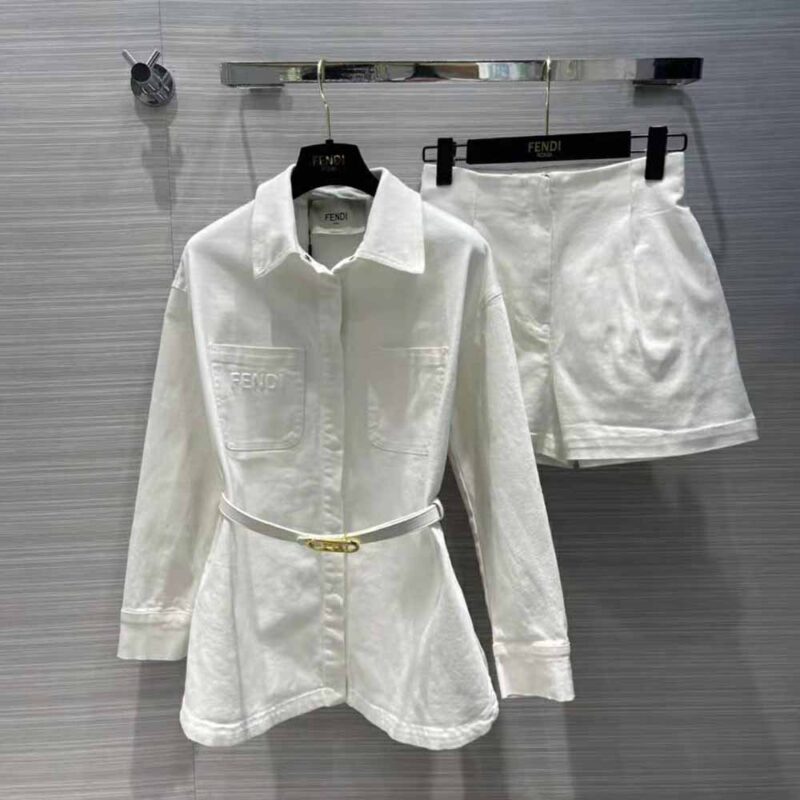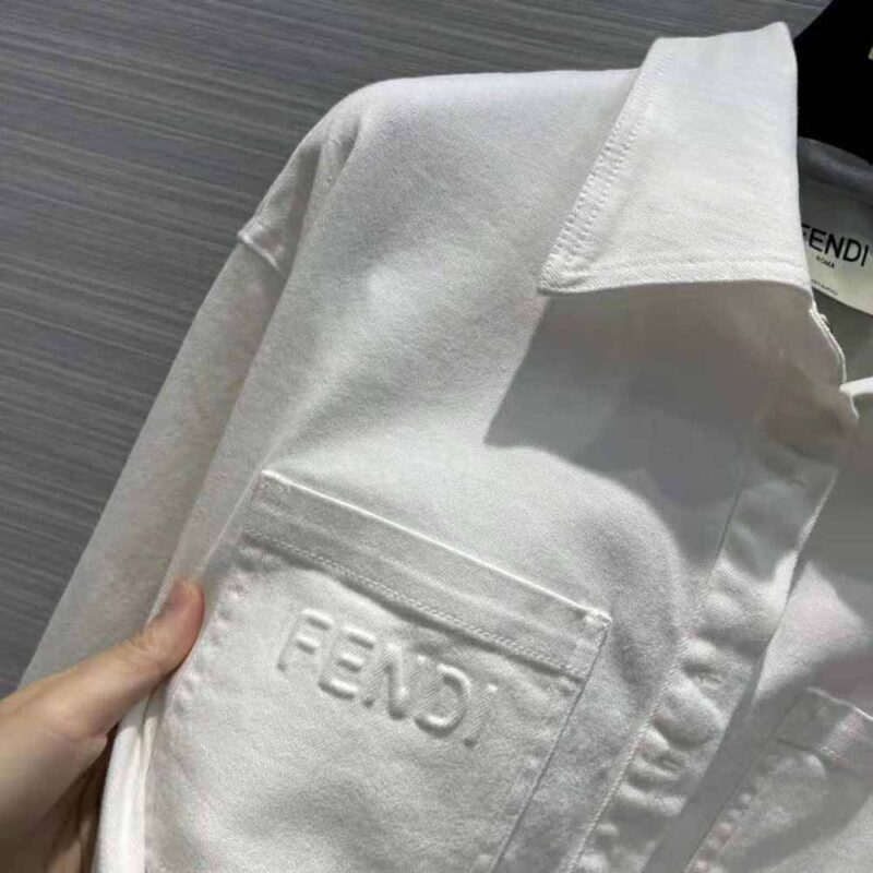 - Made of white cotton denim. Branded with embossed Fendi lettering on the right pocket.