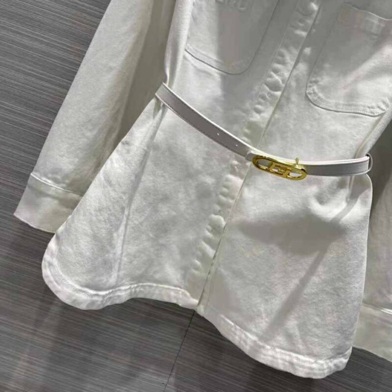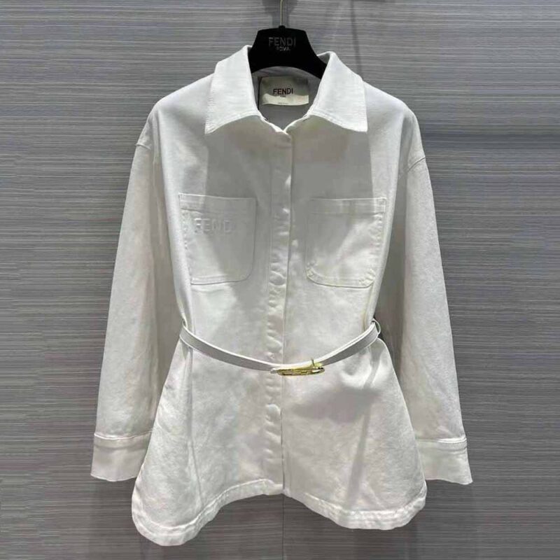 - Matching belt with metal Fendi O’Lock buckle. Oversized patch pockets on the chest.
