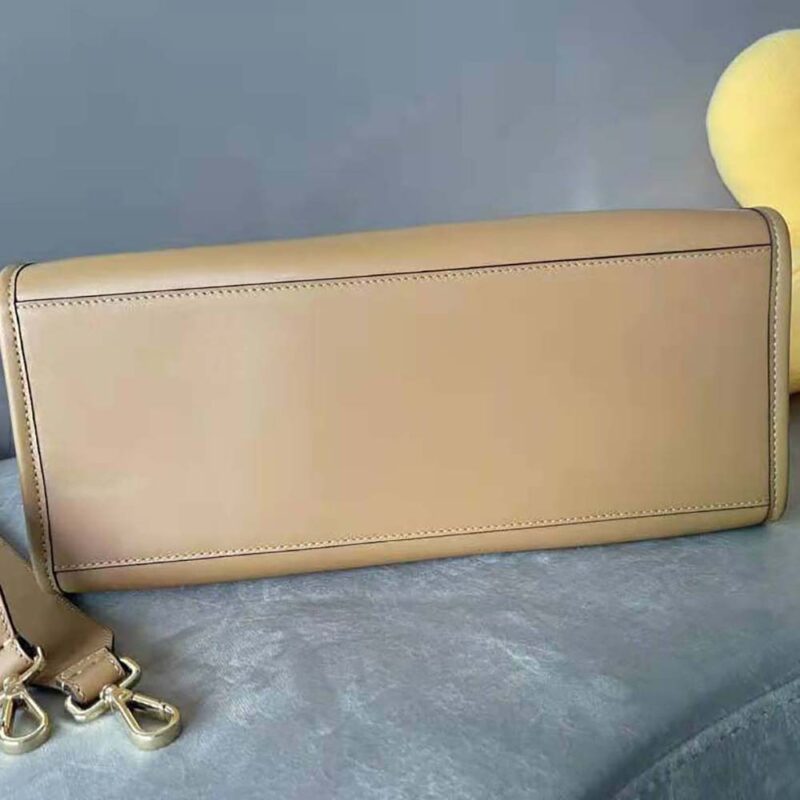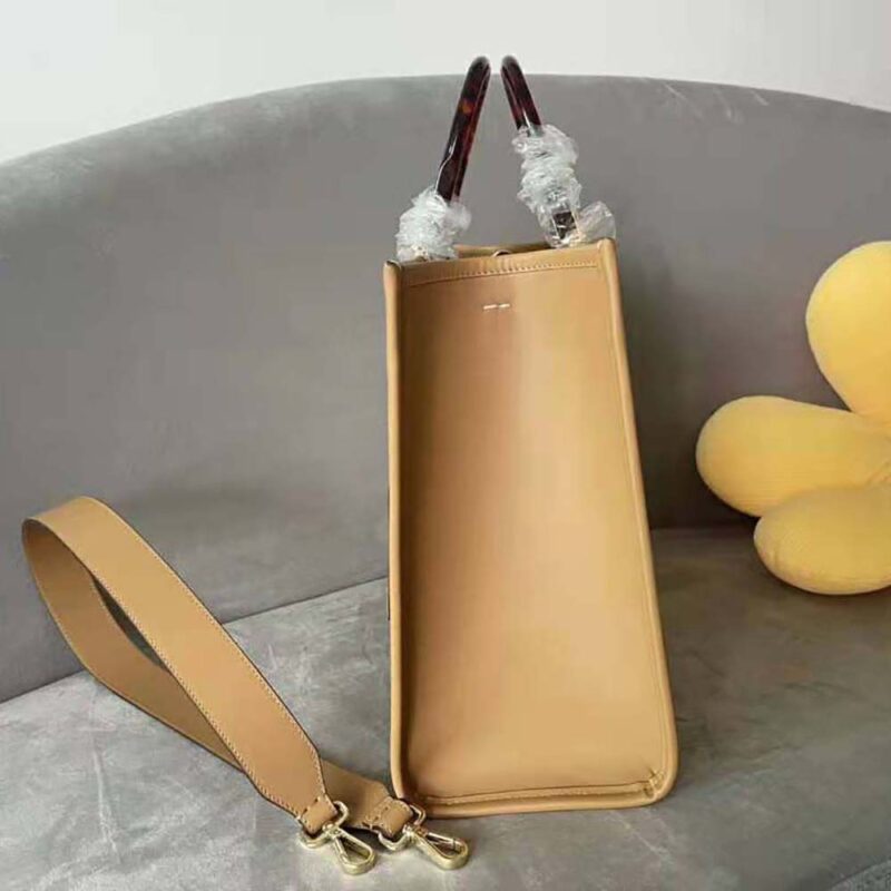 Fendi Women Sunshine Affordable Dupe Medium Light Brown Leather and Elaphe Shopper Bag
