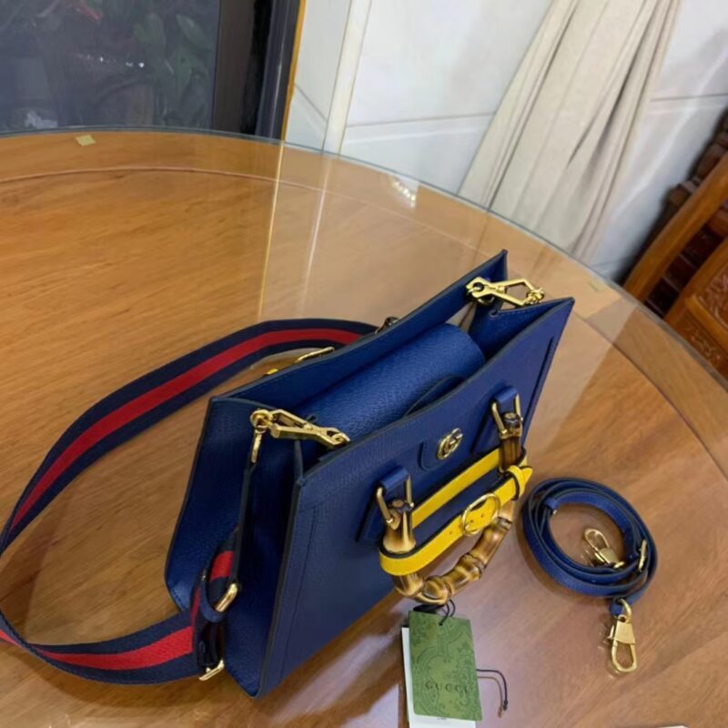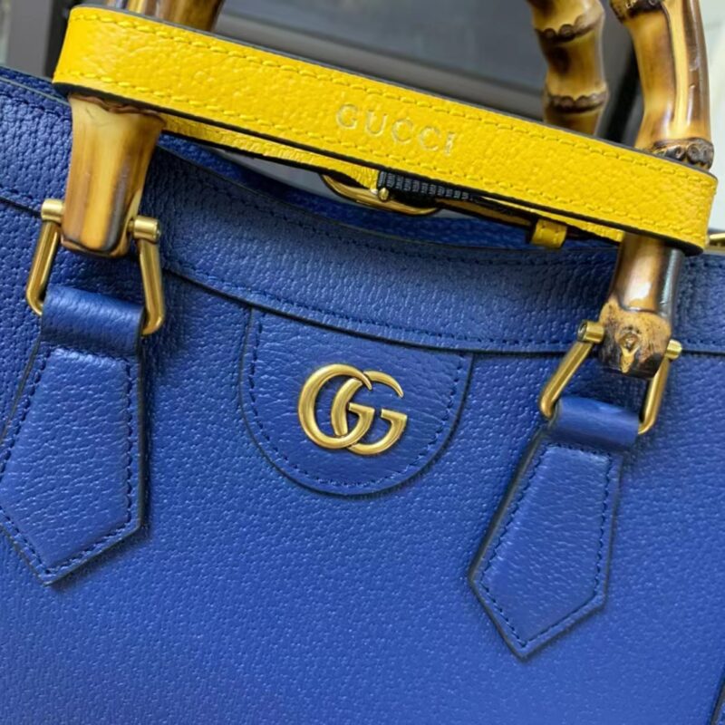 Gucci GG Women Diana Small Tote Bag Double G Royal Blue Leather