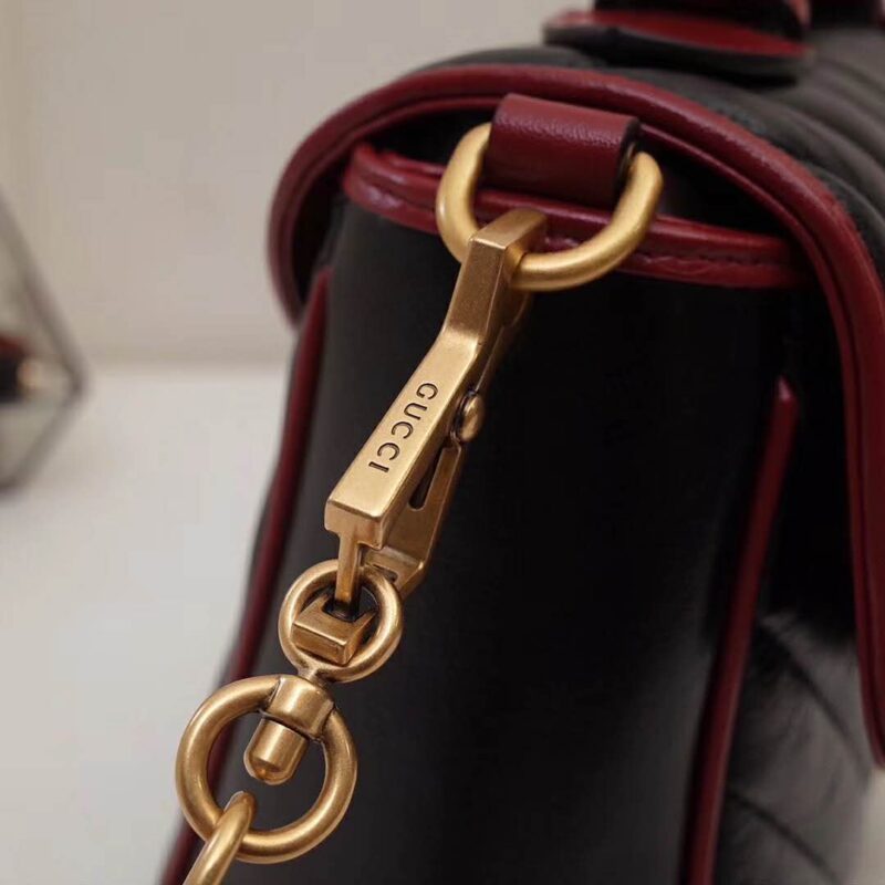 Gucci GG Women GG Marmont Small Top Handle Bag in Black Diagonal Matelassé Leather