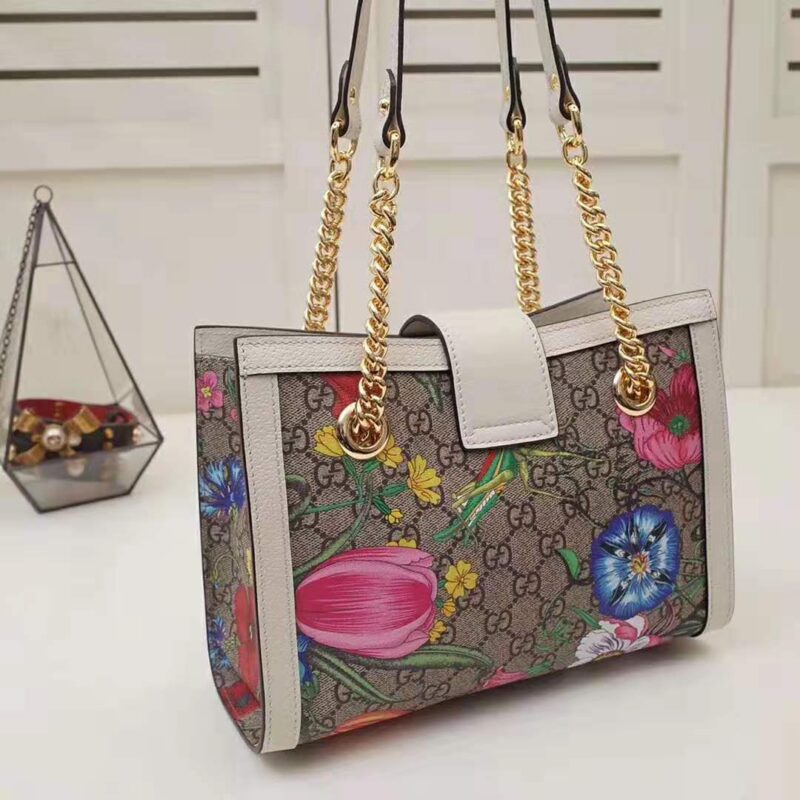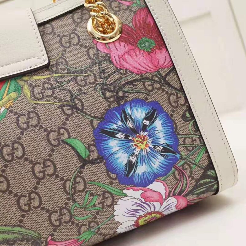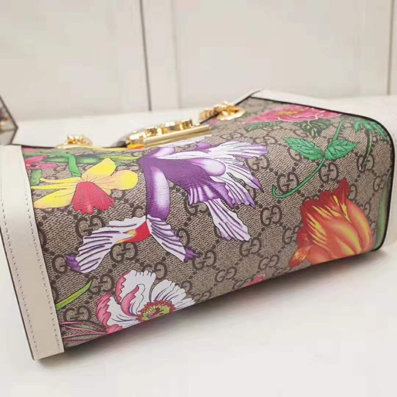 Gucci GG Women Padlock GG Flora Small Shoulder Bag in Beige/Ebony GG Supreme Canvas