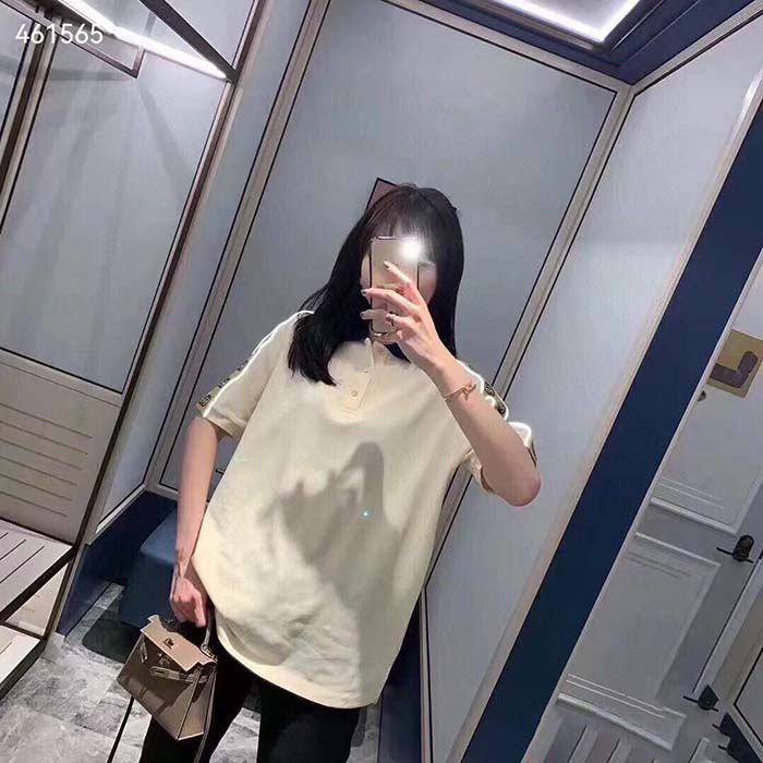 Gucci GG Women Polo with Interlocking G Stripe White Cotton