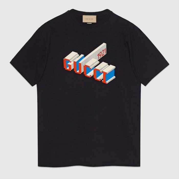 Gucci Men GG Cotton Jersey T-Shirt Black Crewneck Short Sleeves