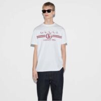 Gucci Men GG Cotton Jersey T-Shirt Gucci Print Red White Crewneck Short Sleeves