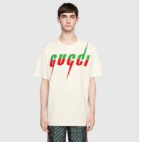 Gucci Men GG T-Shirt Gucci Blade Print White Cotton Jersey Crewneck