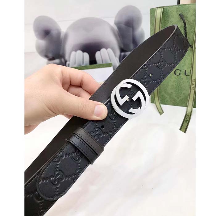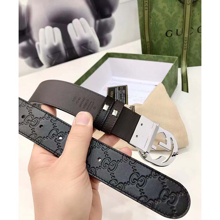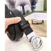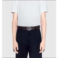 Gucci Unisex GG Reversible Gucci Signature Belt Black Leather Reverses To Brown Leather